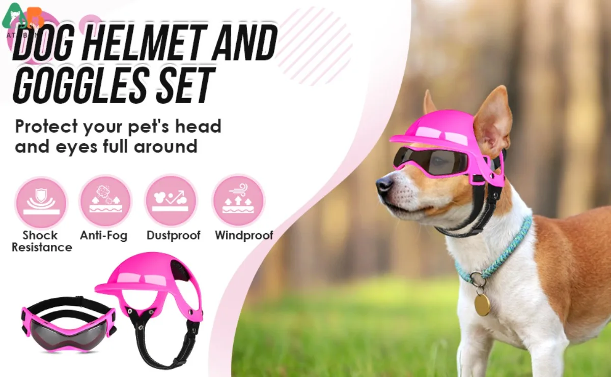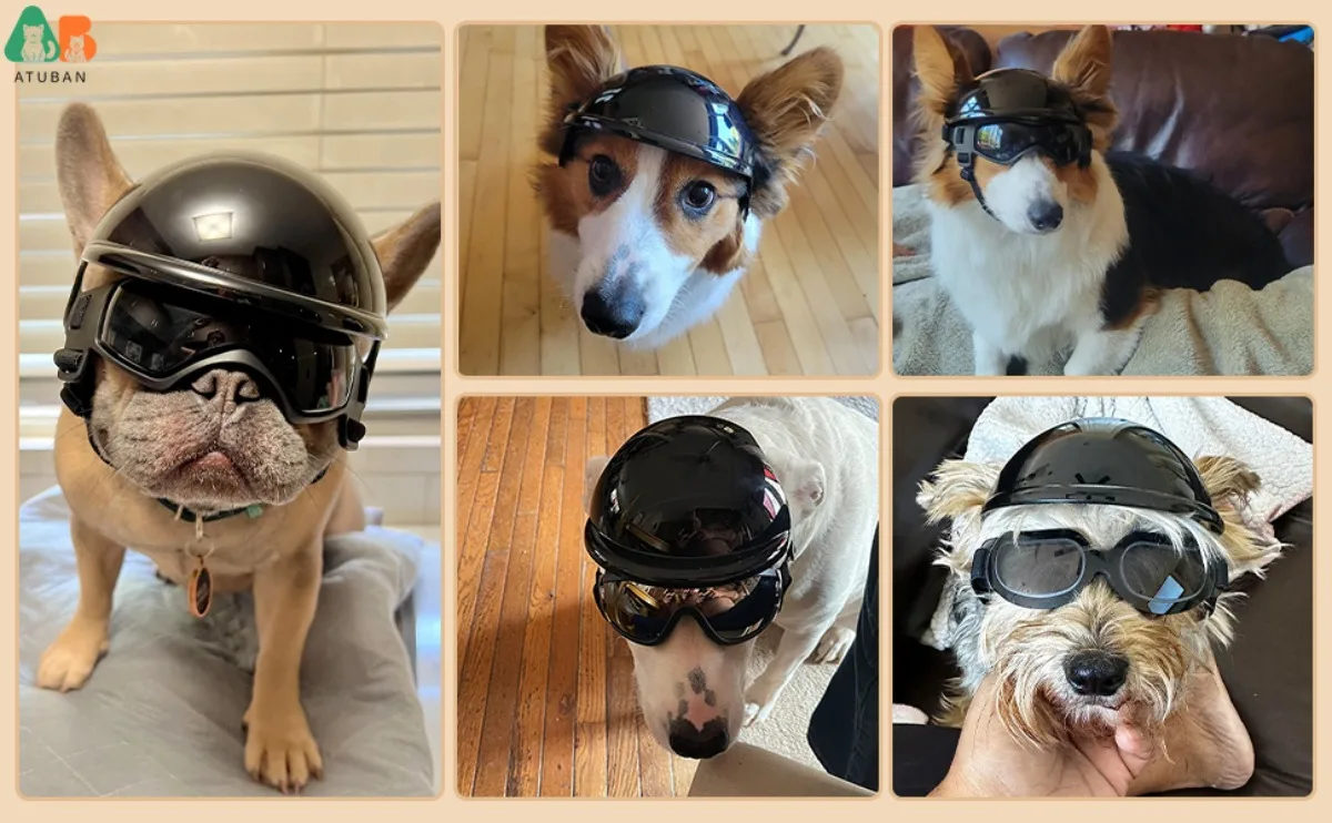 Buena apariencia-- El casco y las gafas para mascotas combinan, se ven muy hermosos y elegantes.