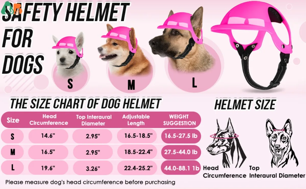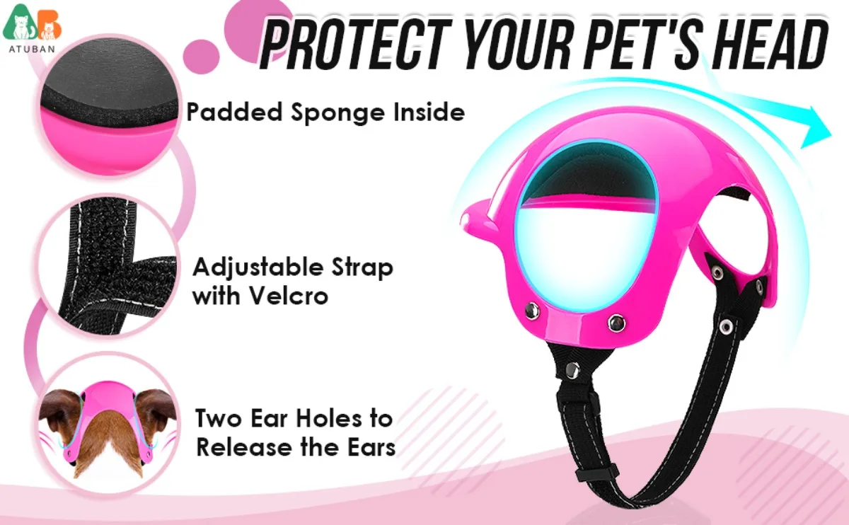 Diseño de doble orificio: un casco para perros con dos orificios para las orejas para que las mascotas estiren sus orejas y se mantengan cómodas y relajadas.El interior del casco está relleno de almohadillas de espuma, que son suaves y transpirables, resistentes a la deformación y al desgaste, lo que lo hace cómodo de usar para los perros y más seguro de conducir.