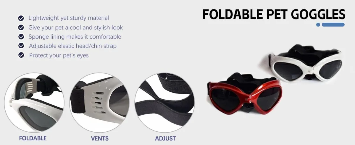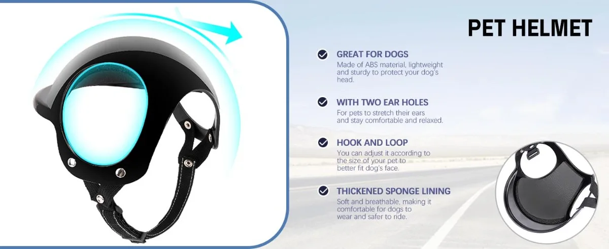 Gafas ajustables para cascos de cachorro: casco de motocicleta para cachorros y gafas con cinturón de ajuste, elástico, amplio rango de ajuste, puede ajustar el tamaño según la cabeza de su perro, fácil de usar y fácil de usar