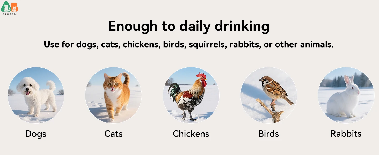 Fácil de usar: conecte la alimentación y el indicador luminoso en estado rojo, luego el tazón estará funcionando; Cuenco resistente, fácil de limpiar, puede usarlo en el garaje, patio, casa para perros/gatos al aire libre, gallinero, refugio de animales al aire libre.