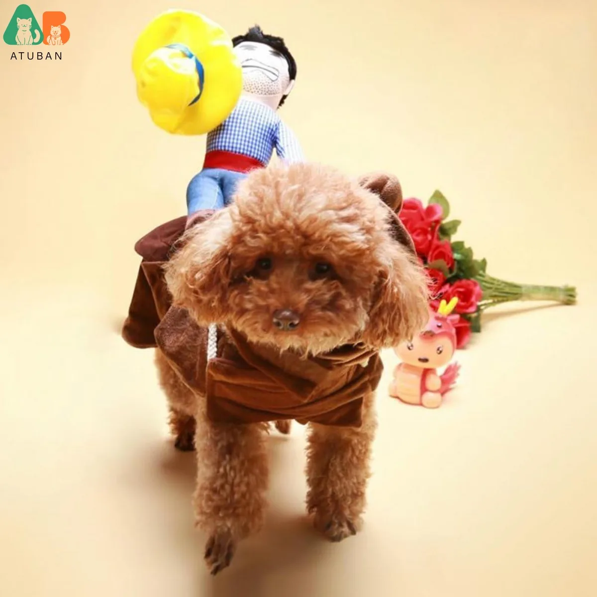 - Bonito disfraz de perro: Esta llamativa, fresca y creativa ropa de caballero vaquero, cuando paseas a tu perro por la calle, atraerá mucha admiración y ojos.