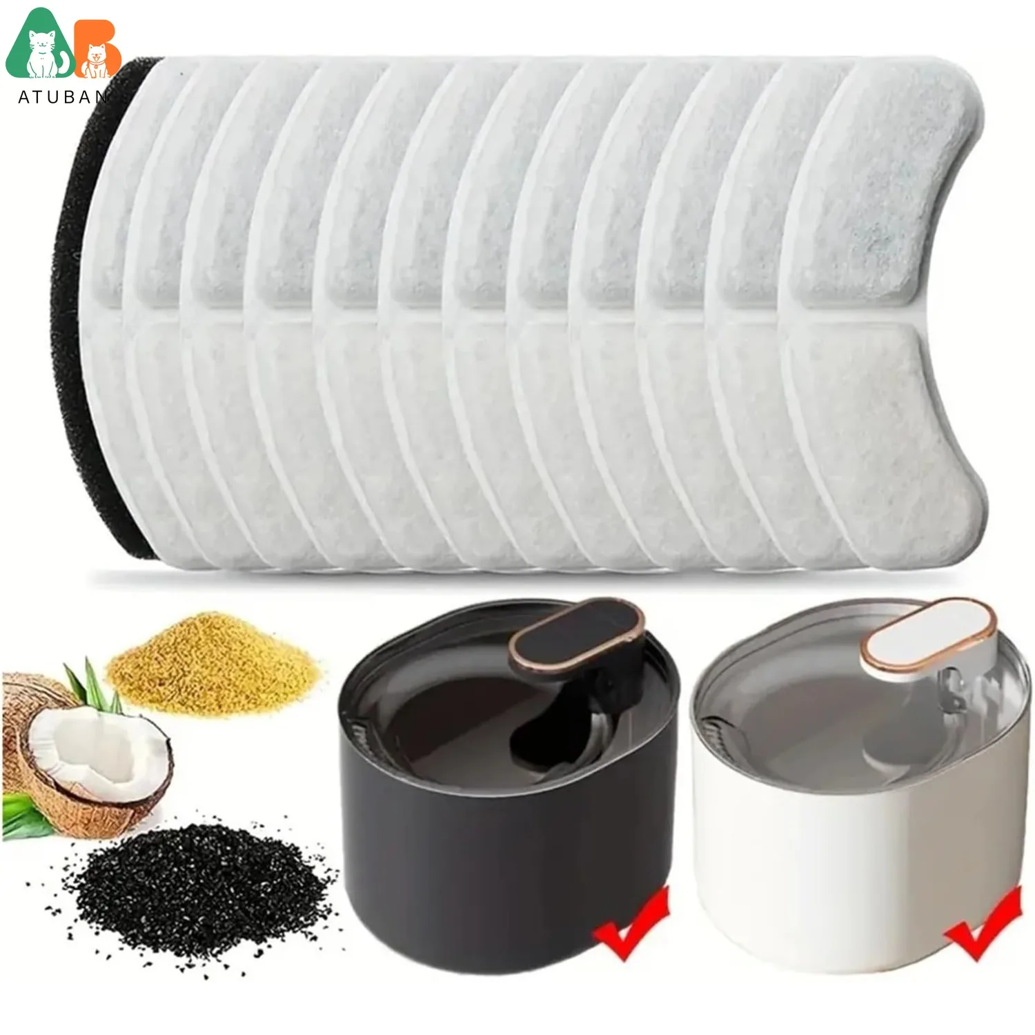 【Material】Compuesto por una capa de algodón, carbón activado y una resina de intercambio iónico. Pueden filtrar el cabello, los metales pesados y mejorar el sabor del agua para que las mascotas puedan beber agua limpia y fresca, más saludable que otros, solo tienen dos filtros. materiales.