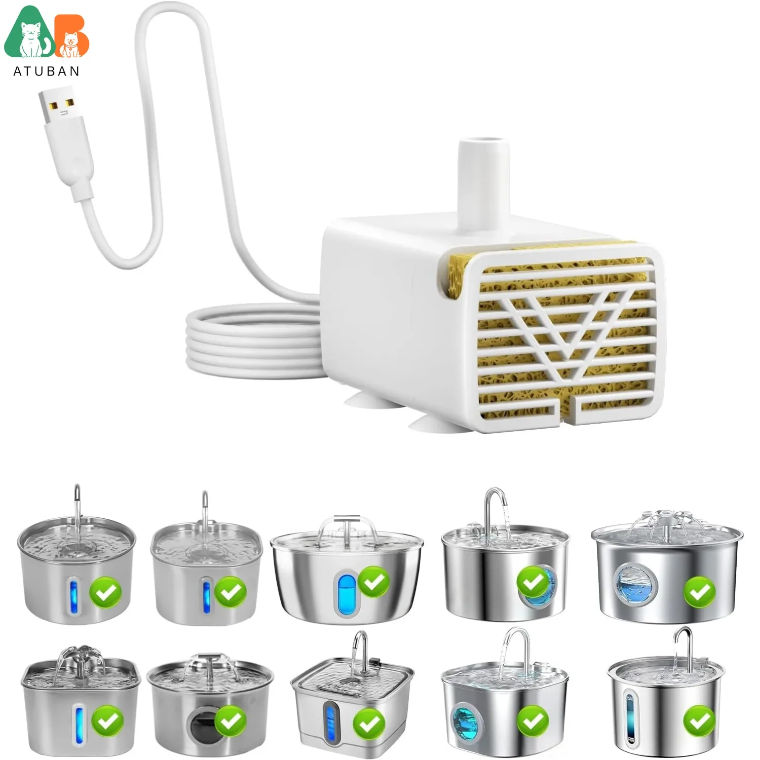ATUBAN Fuente de agua para gatos Bomba de repuesto ultra silenciosa Compatible con fuentes para beber para perros, bomba de agua automática para fuente de agua para mascotas