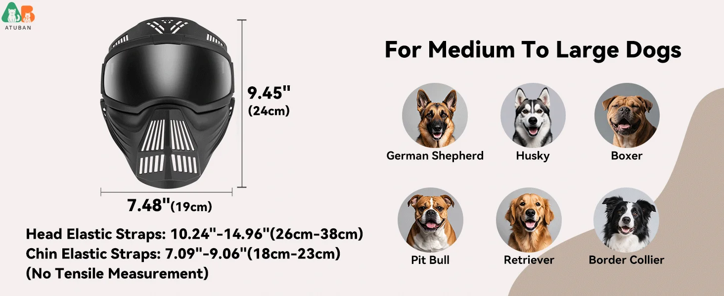 Equipo ajustable para perros: correas elásticas para la cabeza y la barbilla, alta capacidad de ajuste, fácil de poner y quitar.Correa para la cabeza: 10,24"-14,96"(26 cm-38 cm), Correa para la barbilla: 7,09"-9.06"(18 cm-23 cm), sin medida de tracción.
