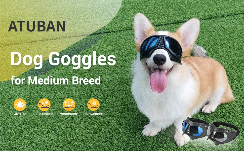 Gafas para perros de raza mediana: las gafas de sol para perros ATUBAN proporcionan protección ocular diaria, con sus mascotas disfrutan jugando al aire libre, sin miedo a los rayos UV y al polvo. Especialmente adecuado para perros a los que les gusta sacar la cabeza por la ventana del coche.
