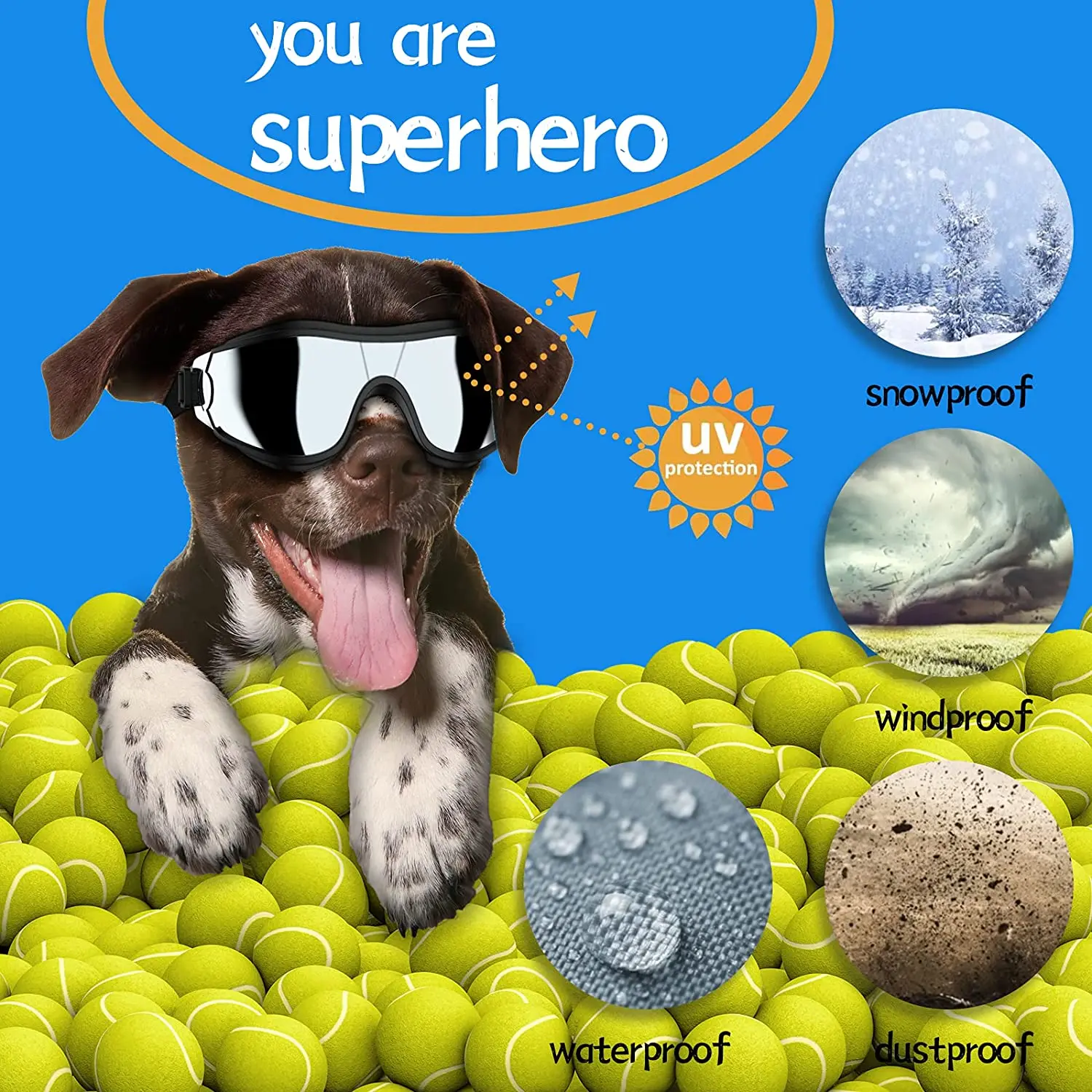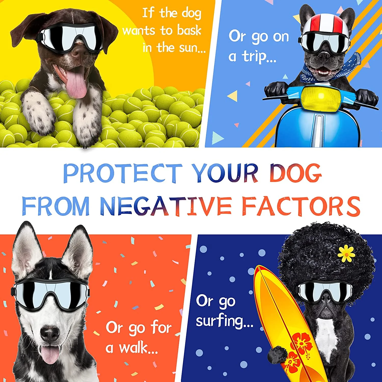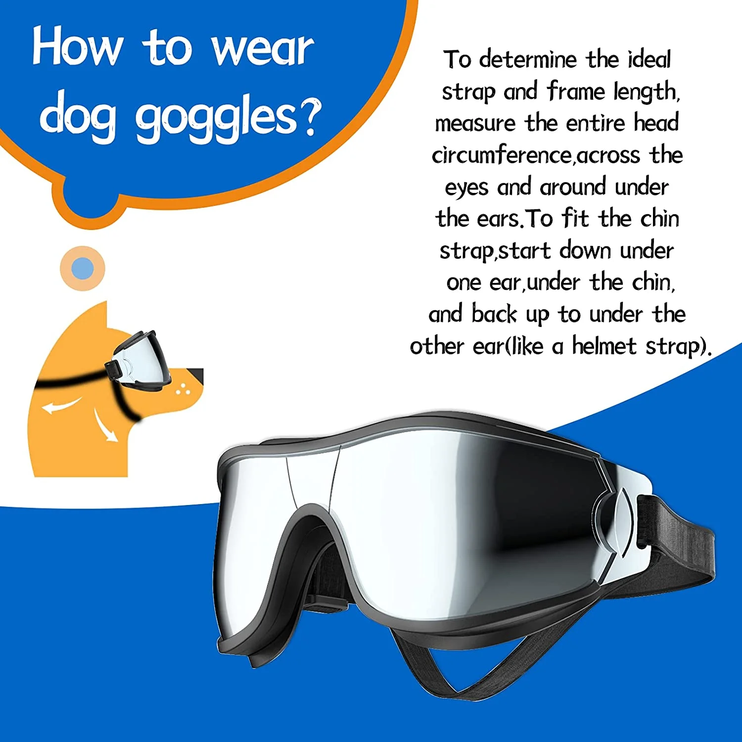 Proporciona protección UV 100%, inastillable, impermeable, antivaho, protege los ojos de su perro del viento y los escombros.