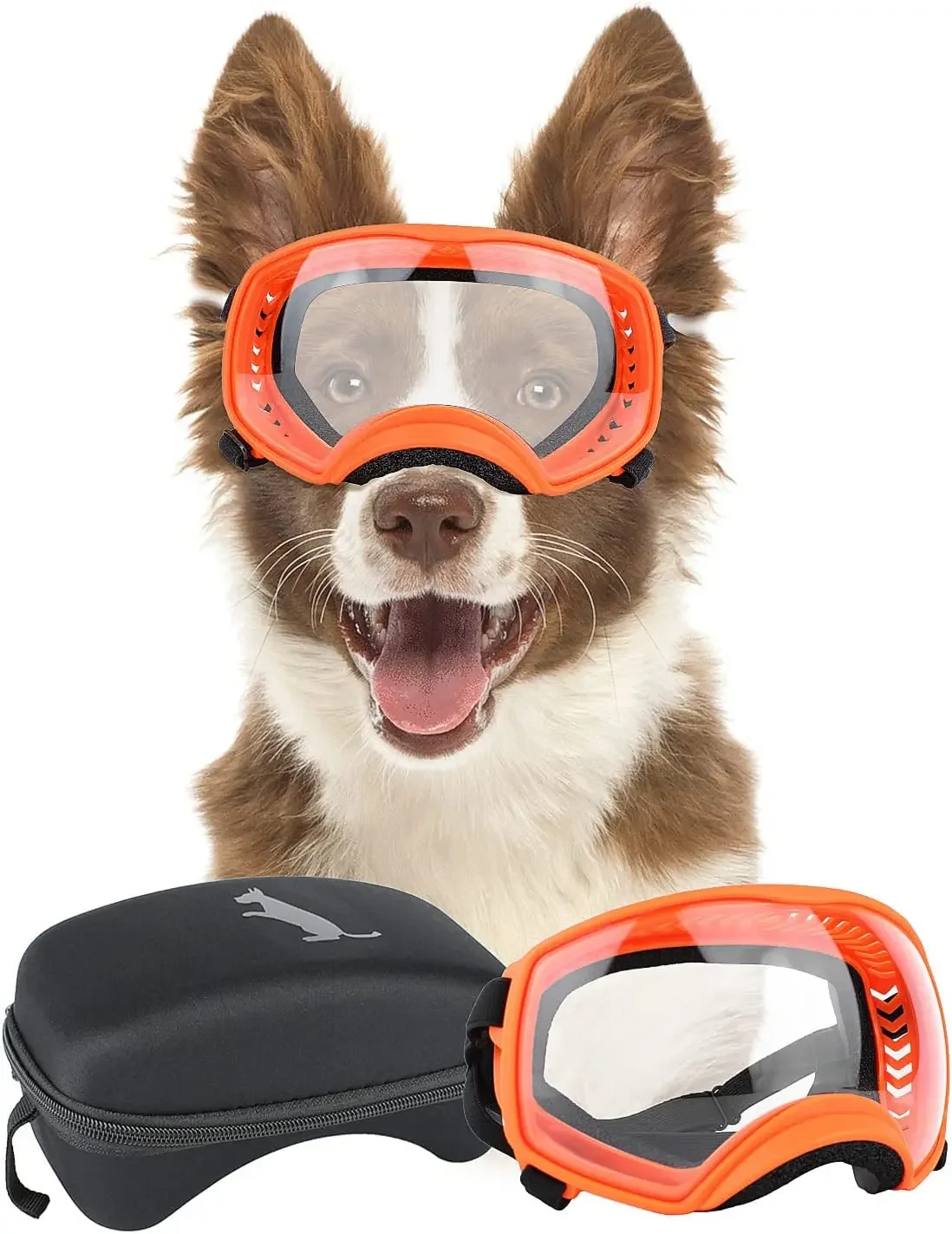 Diseñado para la comodidad: a muchos perros no les gustan las gafas de sol para perros cuando comienzan a usarlas, el diseño de estas gafas minimizará esta situación. Montura transpirable, almohadilla de esponja, lentes transparentes, peso ligero, todo esto permitirá que los perros se acostumbren pronto a las gafas de sol.
