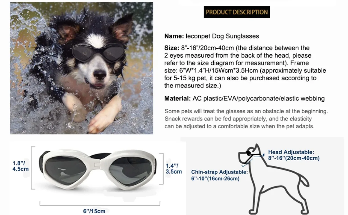 😹Ajustable: estas gafas de sol para perros tienen correas ajustables para la cabeza y la barbilla.Ajuste perfecto, nunca se cae.