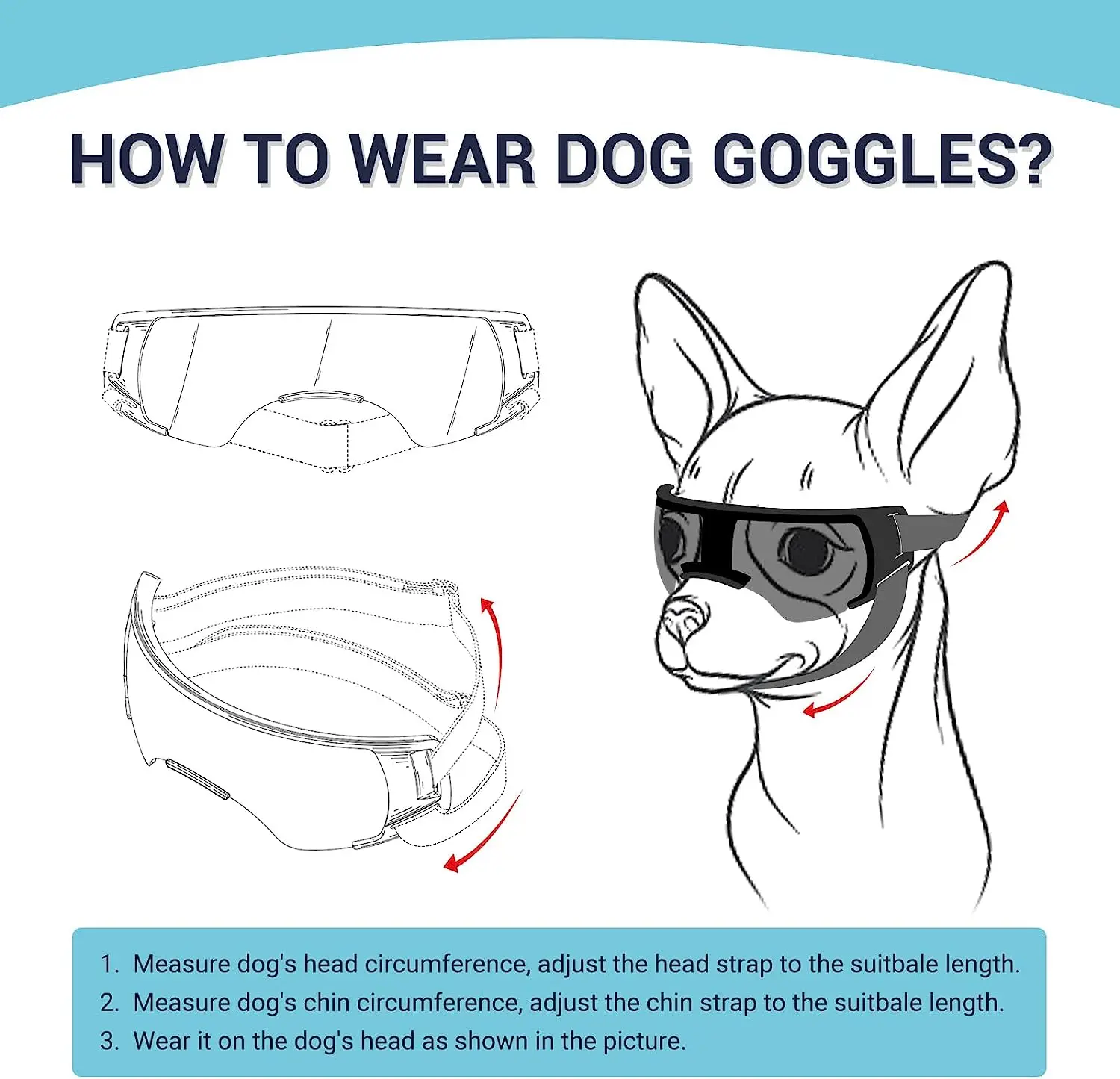 Entrene a su perro: Es posible que los perros no quieran usar las gafas al principio, simplemente tenga paciencia con ellas, haga algunos entrenamientos y golosinas, lentamente se usarán las gafas.