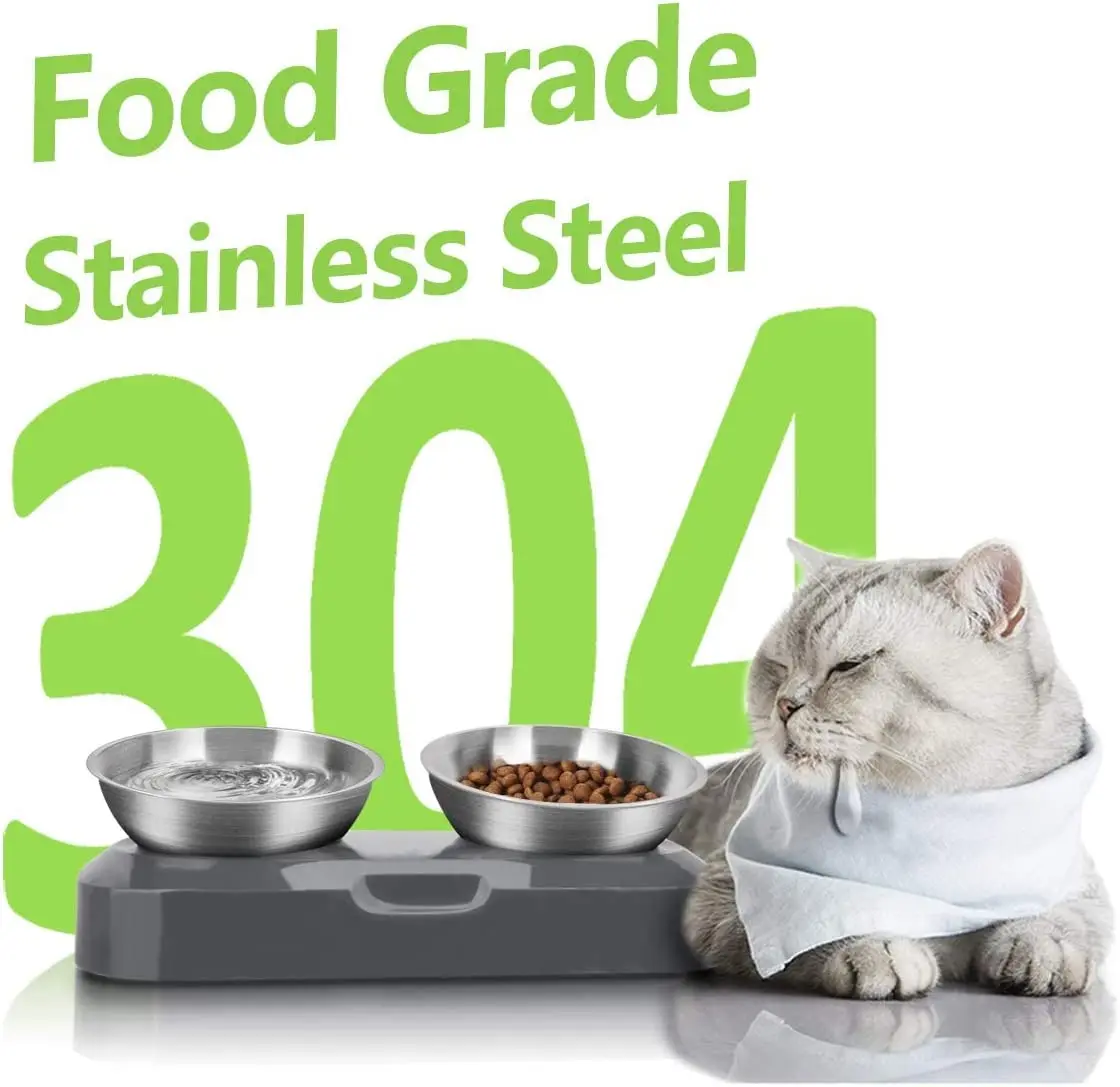 【Grado alimenticio】 El veterinario recomienda el acero inoxidable 304, que es más higiénico que el plástico, no tóxico y no alergénico, no absorbe bacterias ni olores y puede prevenir el acné del gato.