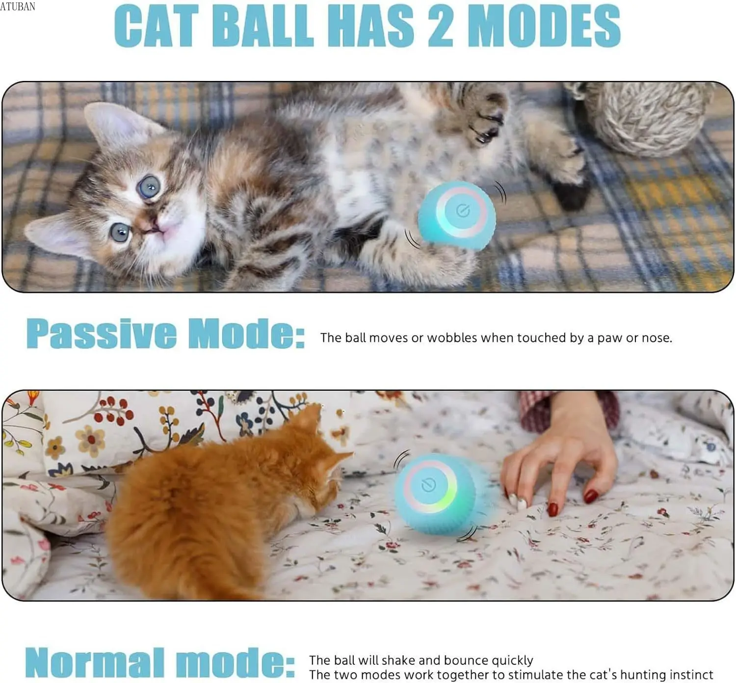 【Dos modos para un juego versátil】Elija entre el modo Normal, donde el juguete interactivo de gato de caza simulado 2 en 1 rueda libremente y se apaga automáticamente después de 5 minutos, o el modo inteligente pasivo. El juguete responderá al toque de tu gato, asegurándose de que pueda jugar cuando lo desee.