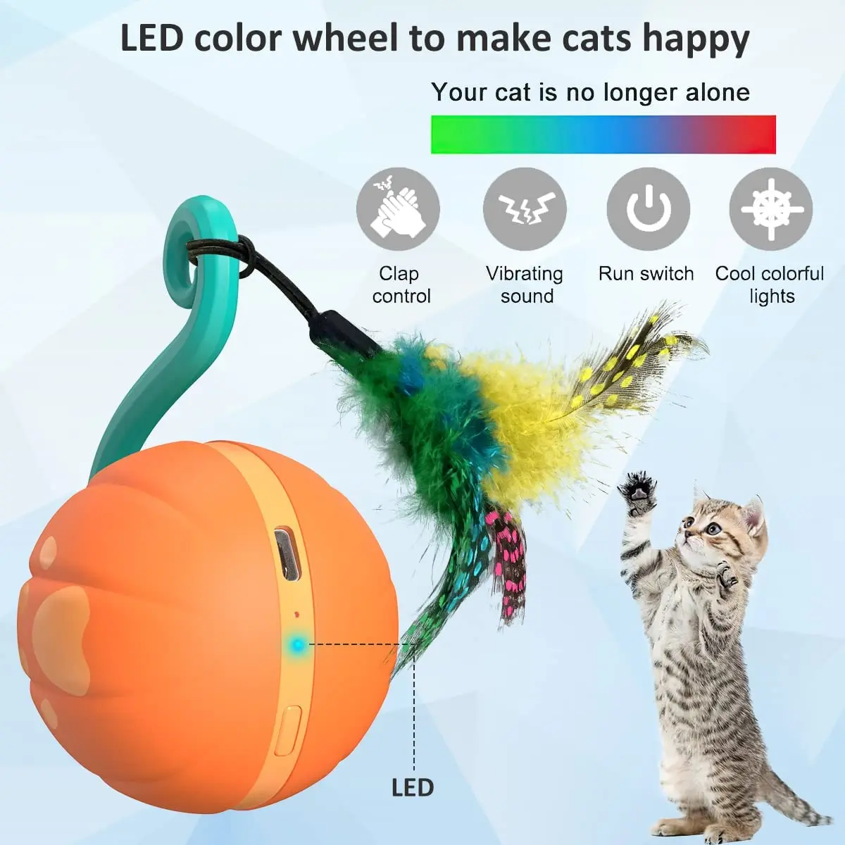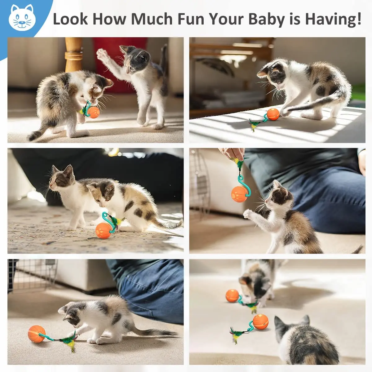 ��【Con 3 juguetes de plumas diferentes】: el juguete para gatos en movimiento puede ser opcional de 3 estilos de plumas, los gatos se pueden reemplazar en cualquier momento cuando se canse de jugar con una pluma.Pelota de juguete con ruedas de silicona anticolisión, reduce eficazmente el ruido y protege los dientes de gato/perro.Nuestros productos están hechos de materiales respetuosos con el medio ambiente, puede estar seguro de usarlos.