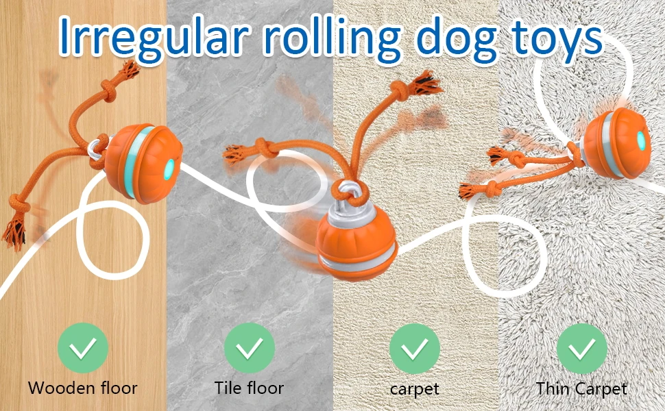 【Escenarios de uso】 La bola inteligente para perros puede rodar sobre cualquier tipo de piso, como mármol, madera, piso de azulejos, alfombras finas, alfombras gruesas, etc.
