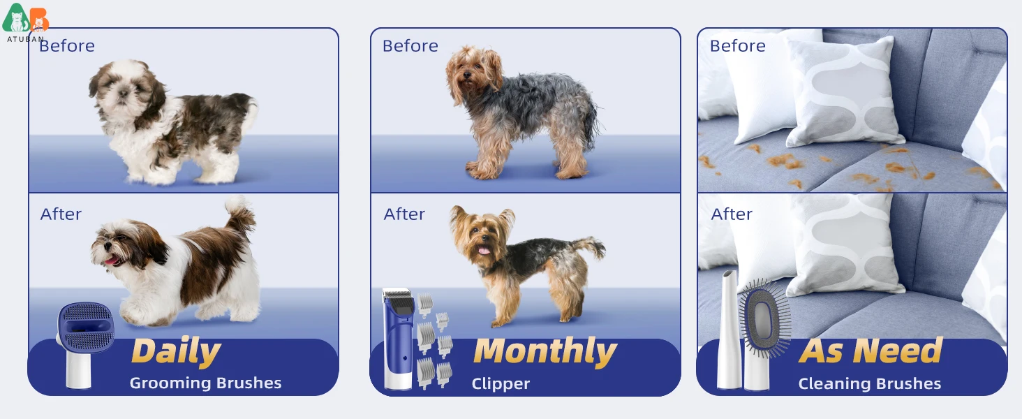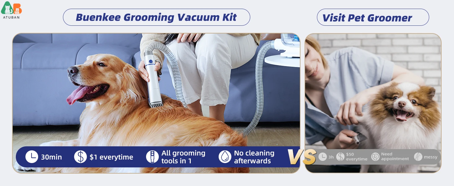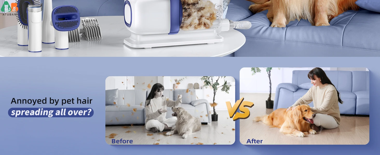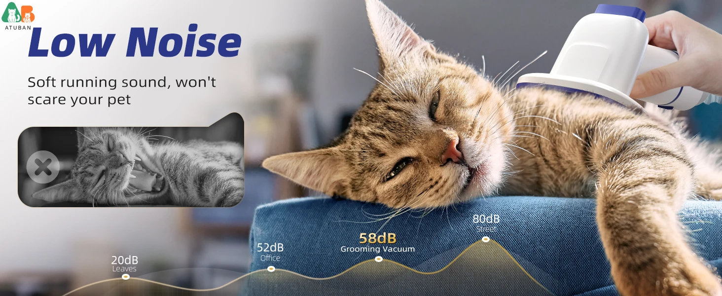 🐾 【Por qué ATUBAN】 Función de vacío; funcionamiento silencioso; 5 herramientas de aseo; Contenedor 2 litros más grande; Manguera extendida y cable de alimentación para mayor flexibilidad; Respuesta rápida de 7/24 horas. ATUBAN merece ser su primera opción si está buscando herramientas de cuidado de nuevo estilo.