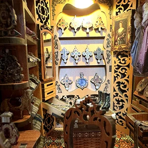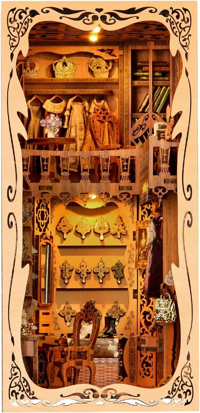 Cada detalle del kit Book Nook Refleja la moda y la elegancia de la vida aristocrática. Montando este guardarropa en miniatura,