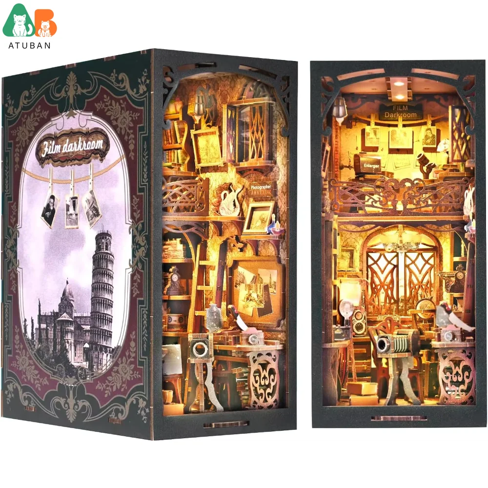 ATUBANDIY Book Nook Kit casa de muñecas sujetalibros modelo Build-Kit de creatividad con luz LED
