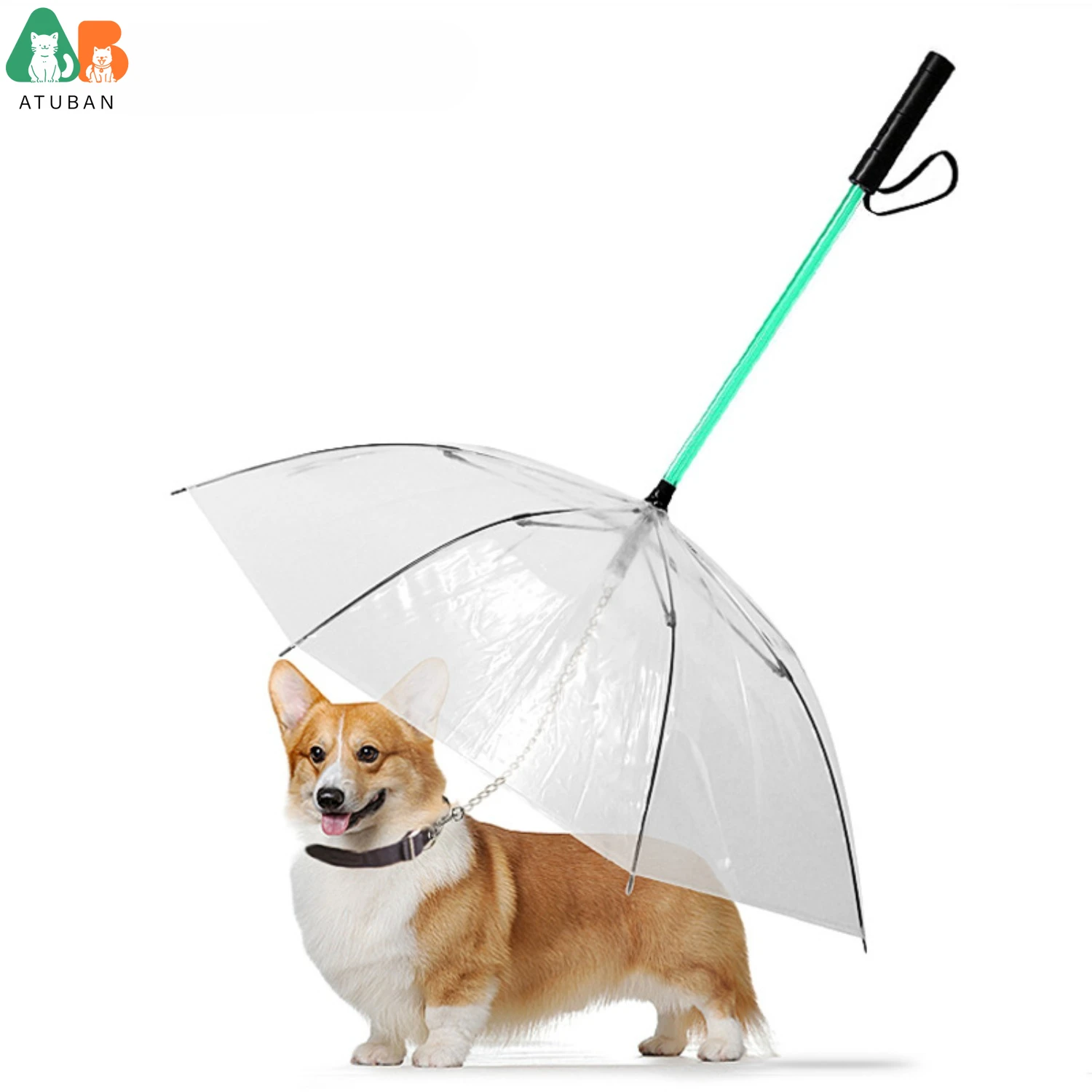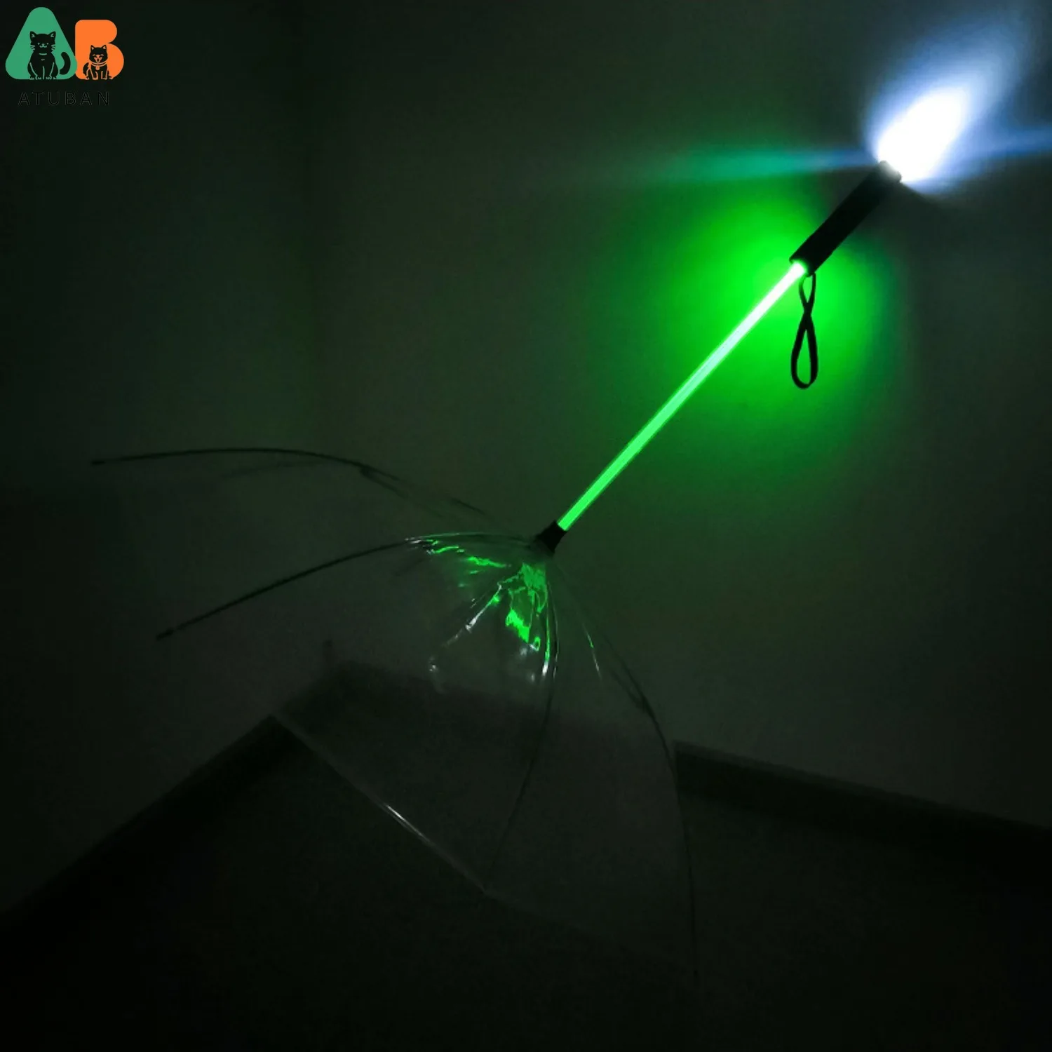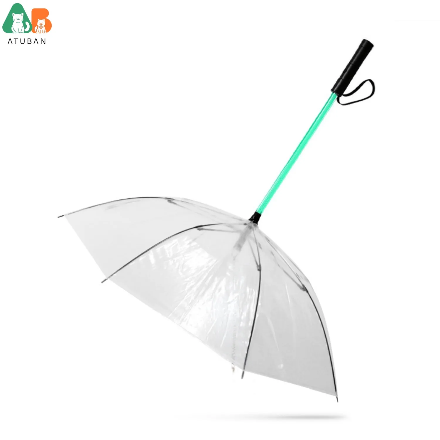 ATUBAN-paraguas transparente para mascotas, suministros para perros, palo de conversión LED creativo de siete colores, correa luminosa para caminar para días lluviosos