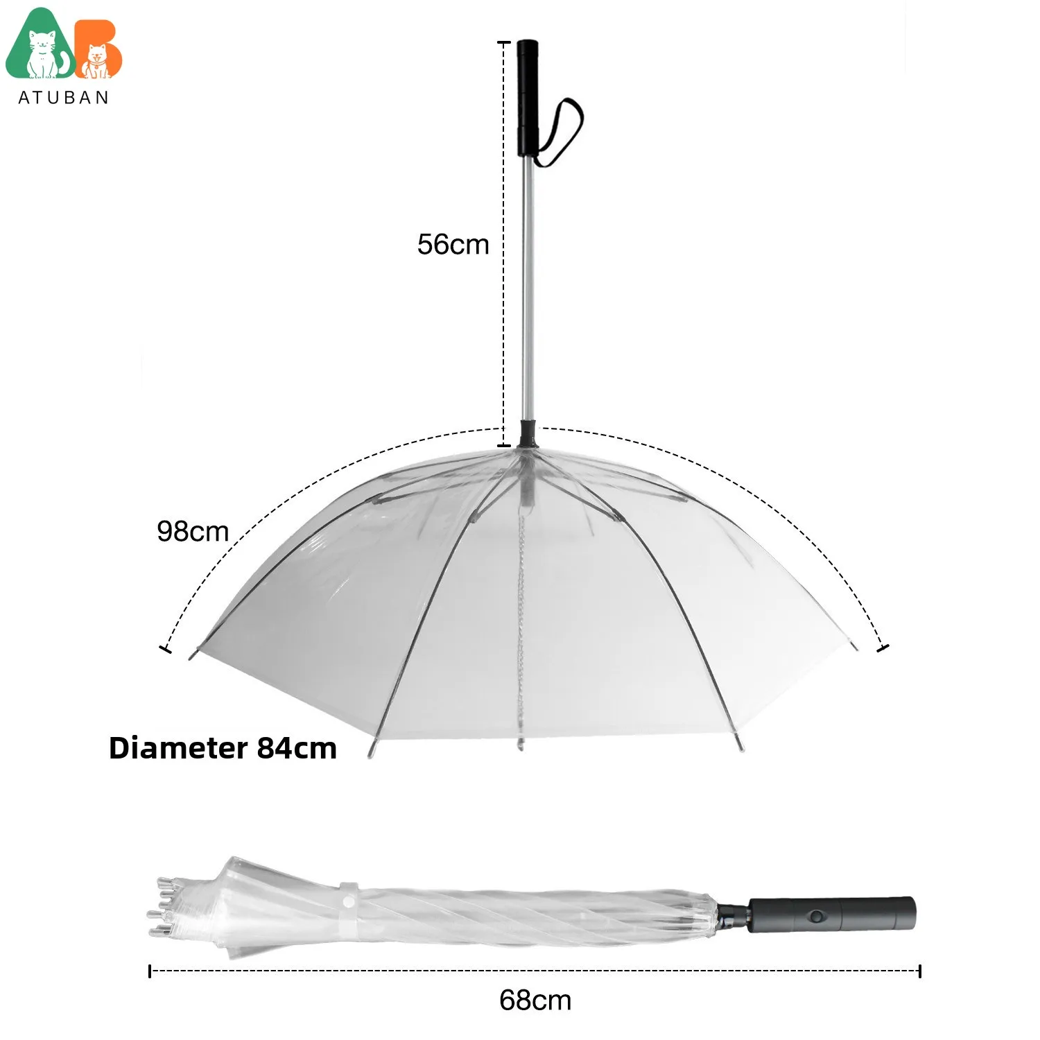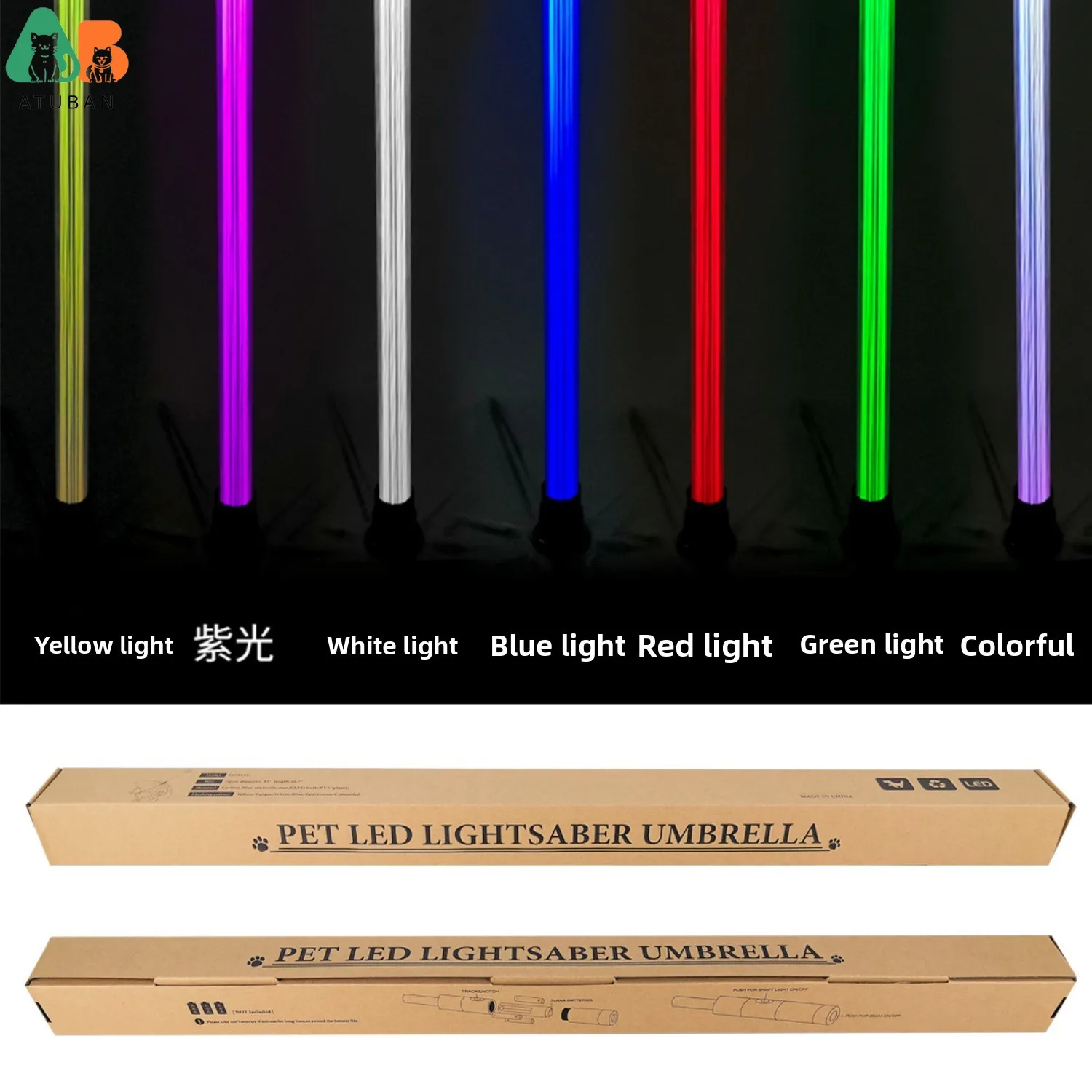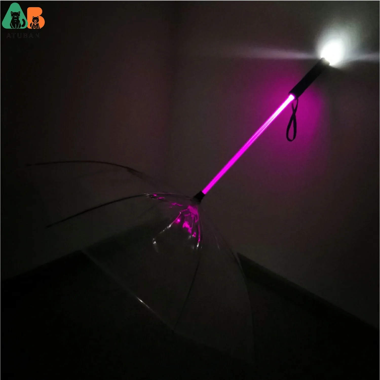 ATUBAN-paraguas transparente para mascotas, suministros para perros, palo de conversión LED creativo de siete colores, correa luminosa para caminar para días lluviosos