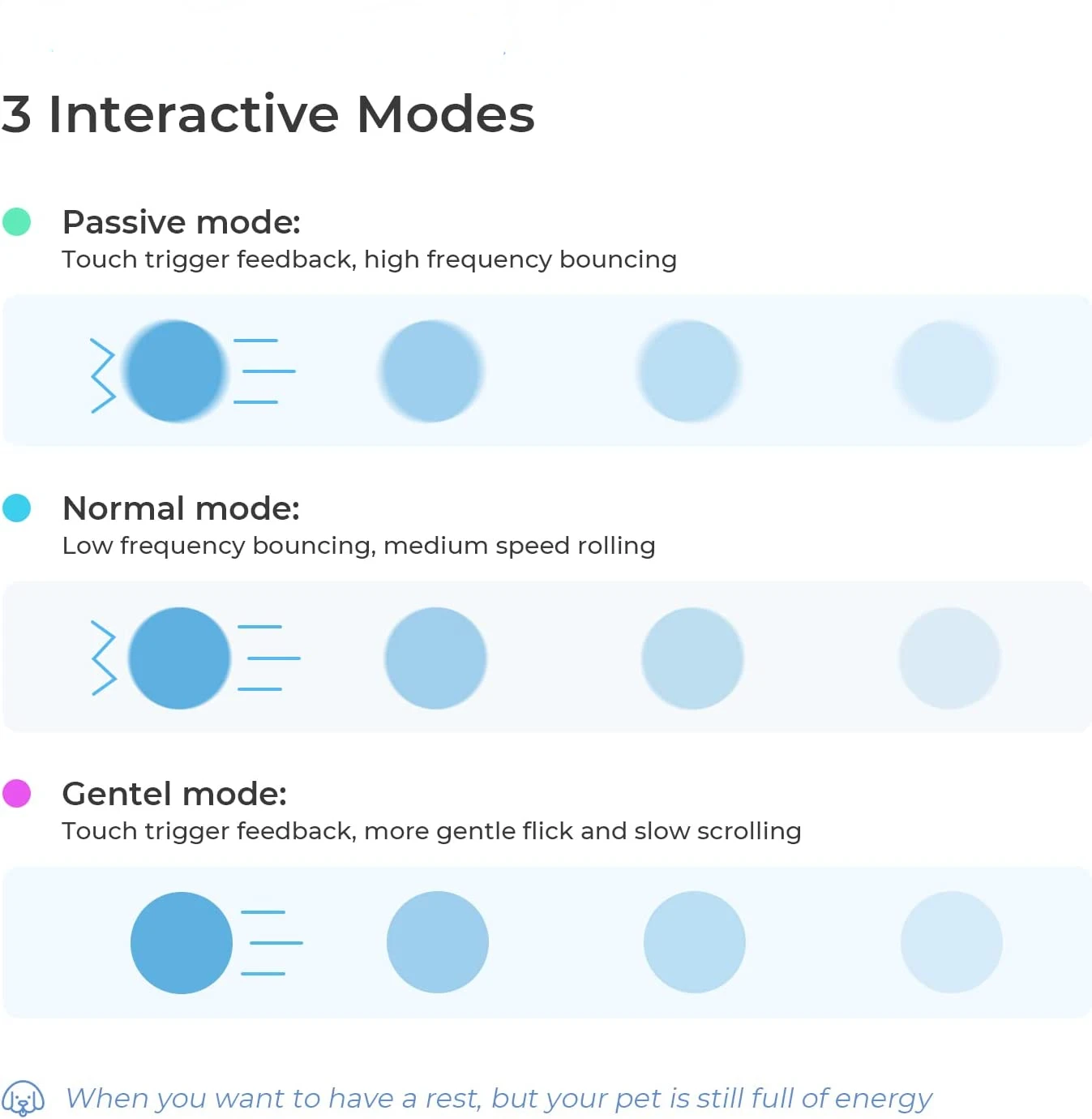 Juguetes interactivos novedosos y realmente inteligentes para perros: ATUBAN Wicked Ball SE tiene 3 modos: modo pasivo, normal y suave.Al estar encendido, se moverá, sacudirá o rebotará automáticamente entre los cuales podrá cambiar para adaptarse a diferentes juegos de perros.Mientras tanto, las luces LED se encenderán, lo que puede captar la atención del perro. Cuando quieras descansar pero tu mascota todavía está llena de energía, esta es la elección adecuada para ti.