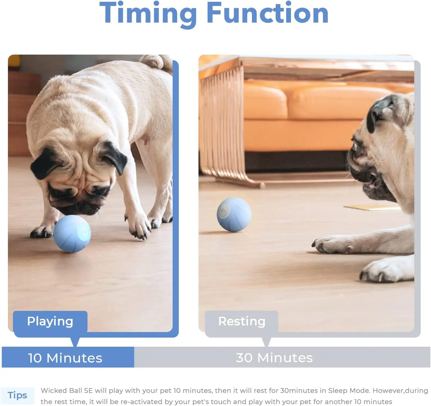 Función de sincronización: ATUBAN Wicked Ball SE ofrece 10 minutos de juego activo y va al modo de descanso durante 30 minutos (táctil para despertar) para mantener a sus perros un buen equilibrio de descanso de juego.Además, una hora de carga admite 4 horas de reproducción.