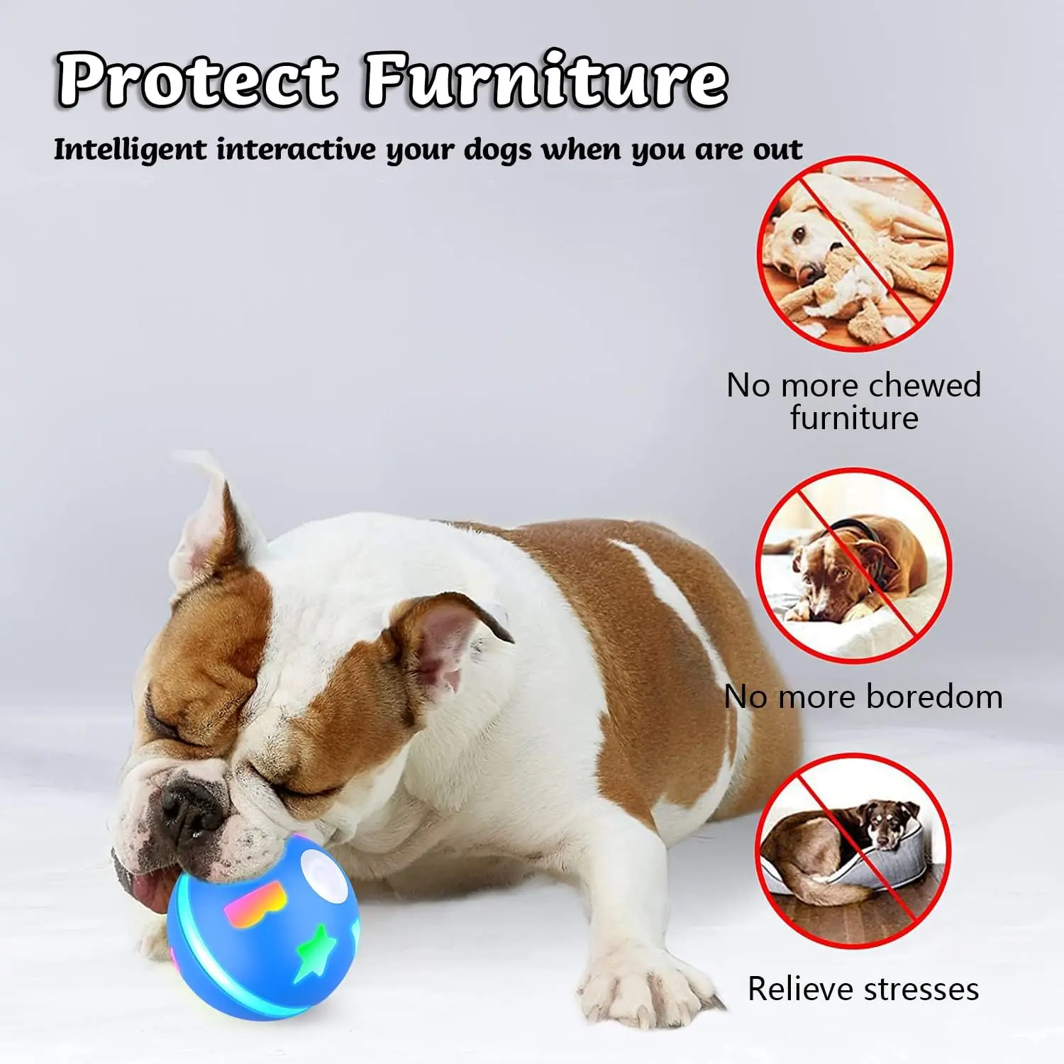Juguete interactivo para perros con bola malvada activada por movimiento, despierta automáticamente a los perros que los gatos tocan cuando los dueños salen. Diámetro de las bolas ATUBAN: 7cm, no recomendado para perros de razas grandes o masticadores agresivos.