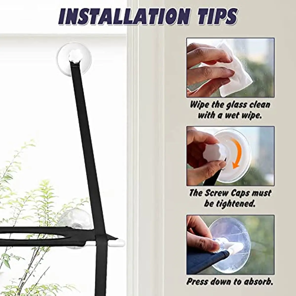 Estable y seguro: la percha para ventana para gatos está equipada con 2 ventosas con perilla resistente y 4 ventosas a presión gruesas.En comparación con las ventosas tradicionales, las ventosas con perilla pueden exprimir el aire más limpio; cuanto menos aire queda, más fuerte será la succión.Nota: Las bajas temperaturas endurecerán las ventosas.Entonces, cuando las use en invierno, coloque la ventosa en agua tibia durante 3 a 5 minutos para asegurarse de que las ventosas puedan estar estables en la superficie del vidrio.