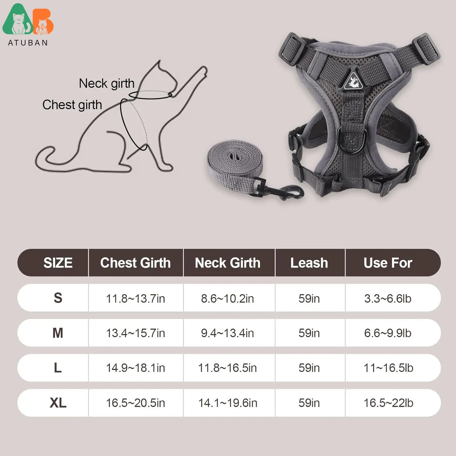 【Ajustable】 Diseñado para brindar comodidad y funcionalidad, el chaleco está diseñado para ser fácil de poner y quitar.Diseño ajustable, las correas ajustables pueden hacer que su gato crezca algo de espacio, lo que no hará que su gato crezca y no podrá usar este arnés para mascotas.