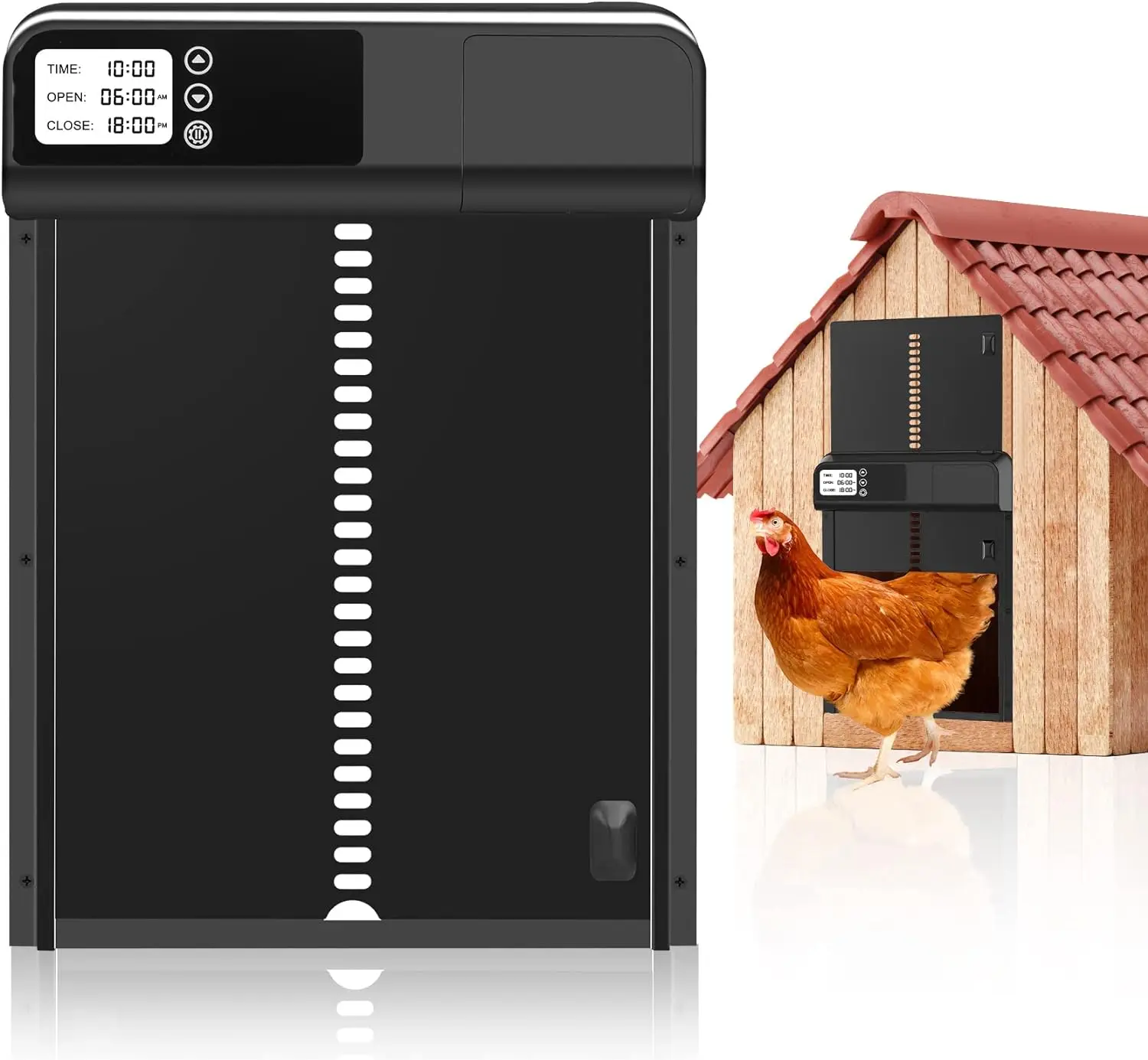 ��【Función antipellizcos】 La puerta automática para pollos detectará automáticamente cuando los pollos entren y salgan al descenderlos y tocarlos, y cuando se detecta un pollo en la puerta, volverá a rebotar y cerrará la puerta automáticamente después de que el pollo se vaya.
