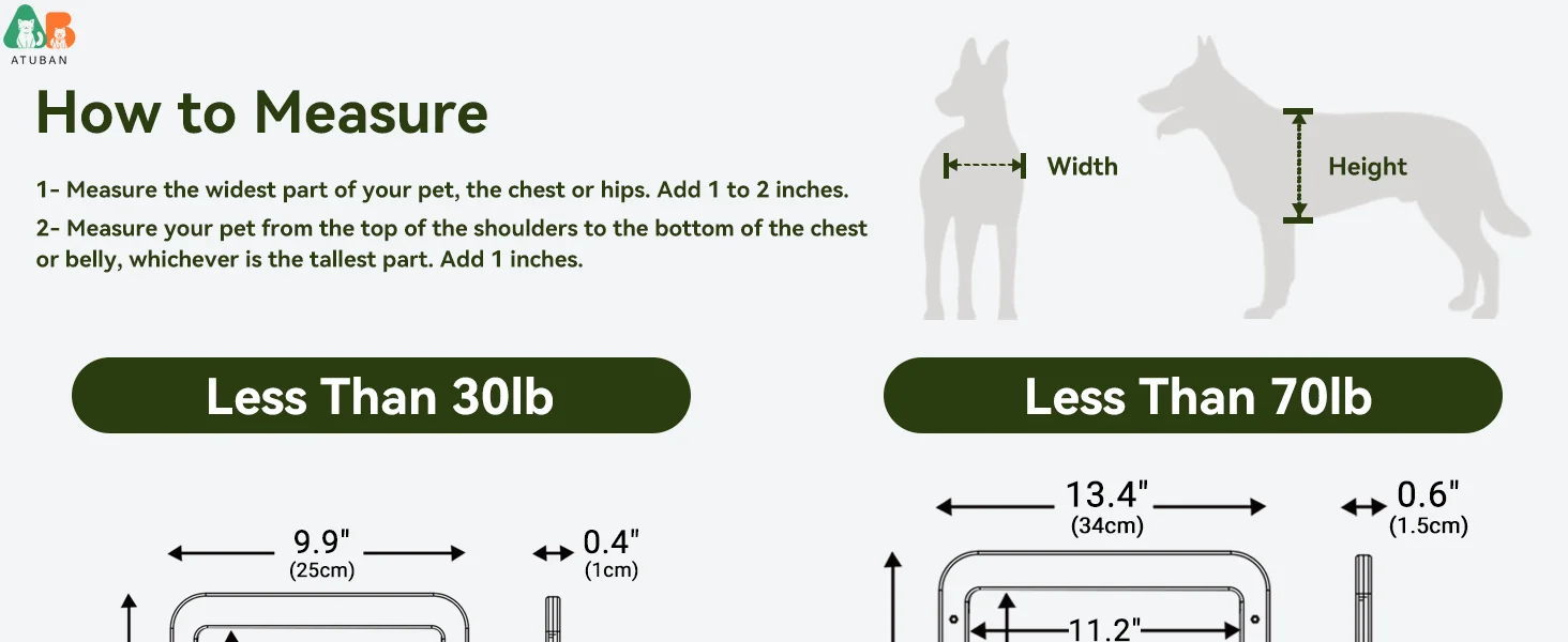 Tamaño de la puerta para perros grandes: Marco exterior: 13,4" * 17,3", Solapa interior de la puerta: 11" * 13", espesor de la puerta para mascotas: 0,67", adecuado para perros de raza media a grande.