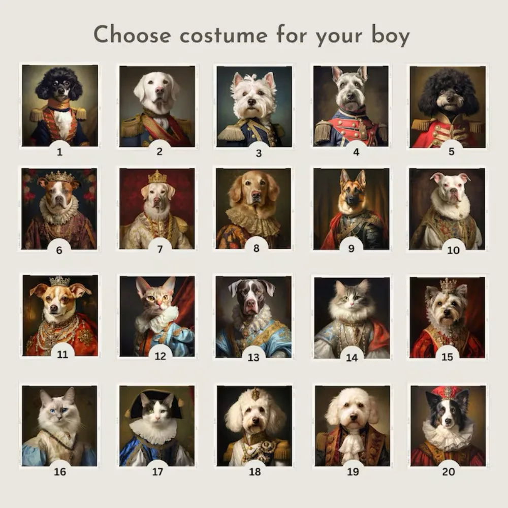 ATUBAN gives you and your beloved pet a special place in any setting with our unique Human and Pet Custom Portrait service, perfect for capturing moments like stepbrothers, or even your dog dressed as a queen.