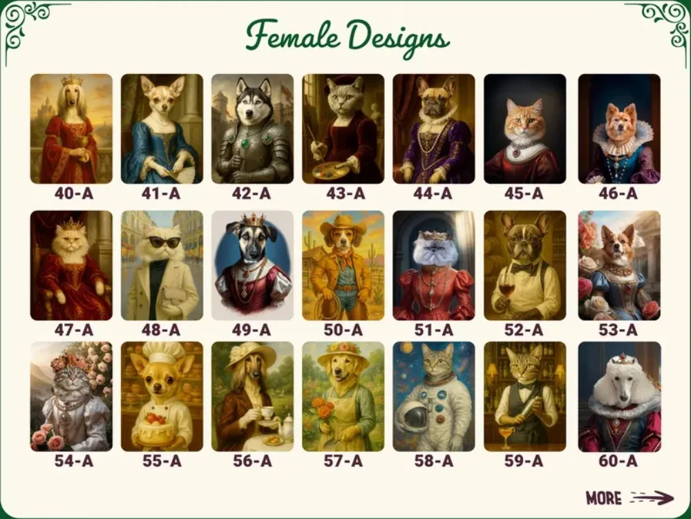 Crafted with love for pet lovers everywhere, our portraits make meaningful decorations for any space. Whether you're seeking a Royal Decoration or a western Decoration, we've got you covered.