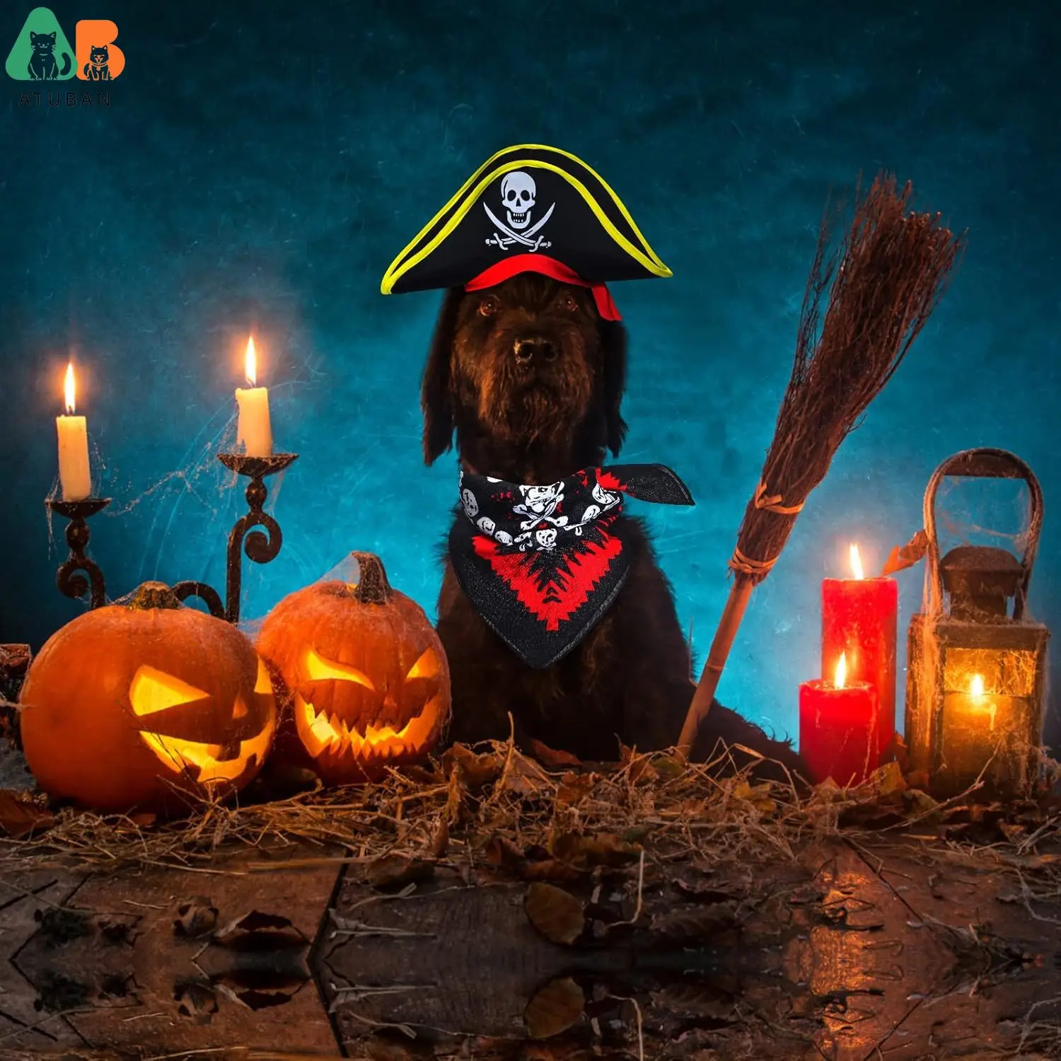 ATUBAN Pet Pirate Hat Costume Accessories --- Have Fun in Your Dog & Cat Performance Party! Made of Polyester, soft, lightweight, comfortable and breathable. Fits for Most Big Dogs & Some Catst; Safe to Use, easy to Wear & Take Off; Perfect for everyday wear, weekend parties, Halloween, Christmas, birthdays, weddings, parades, photo shoot or play date.These pet pirate costume will help you have fun in your pet performance party and pet pirate theme parties..