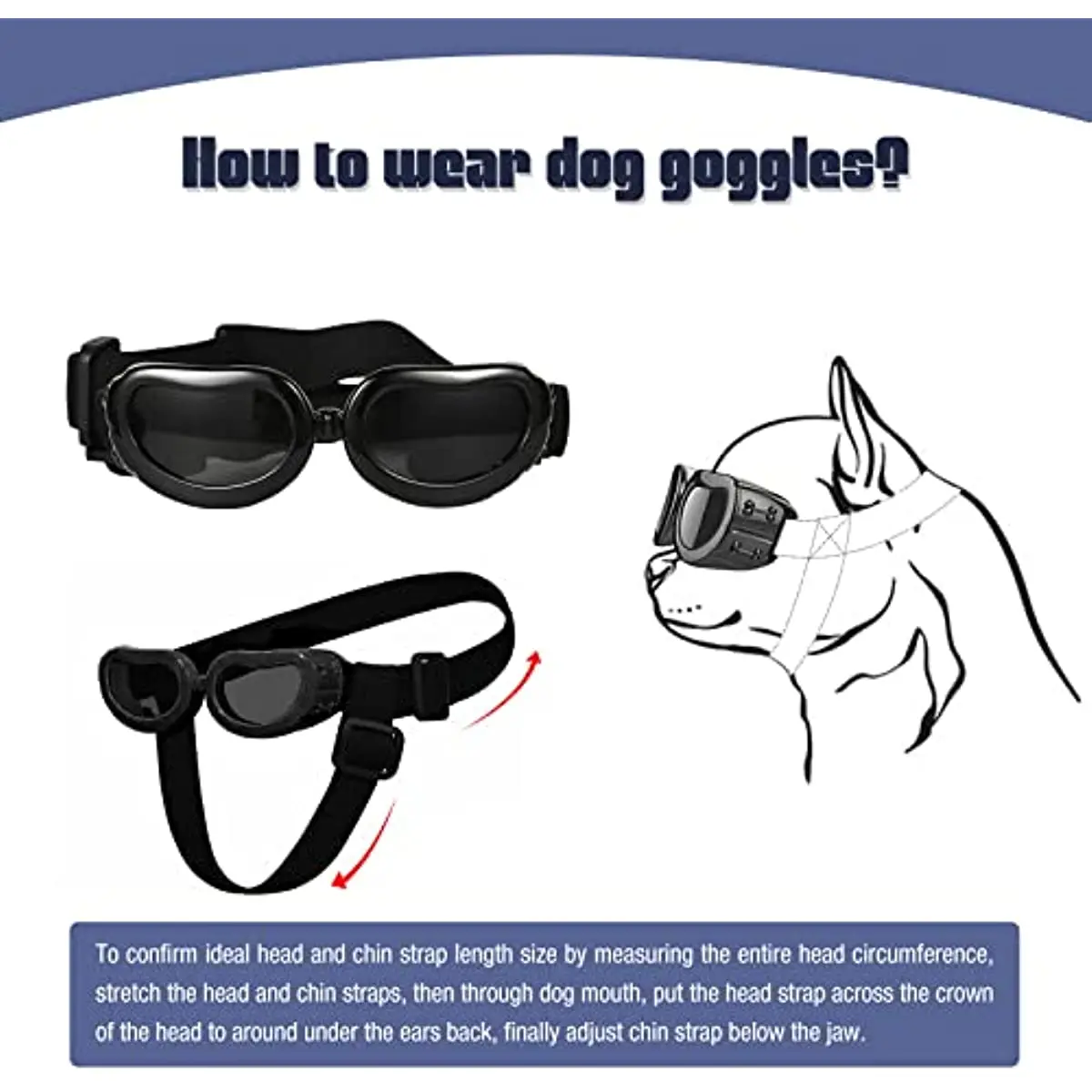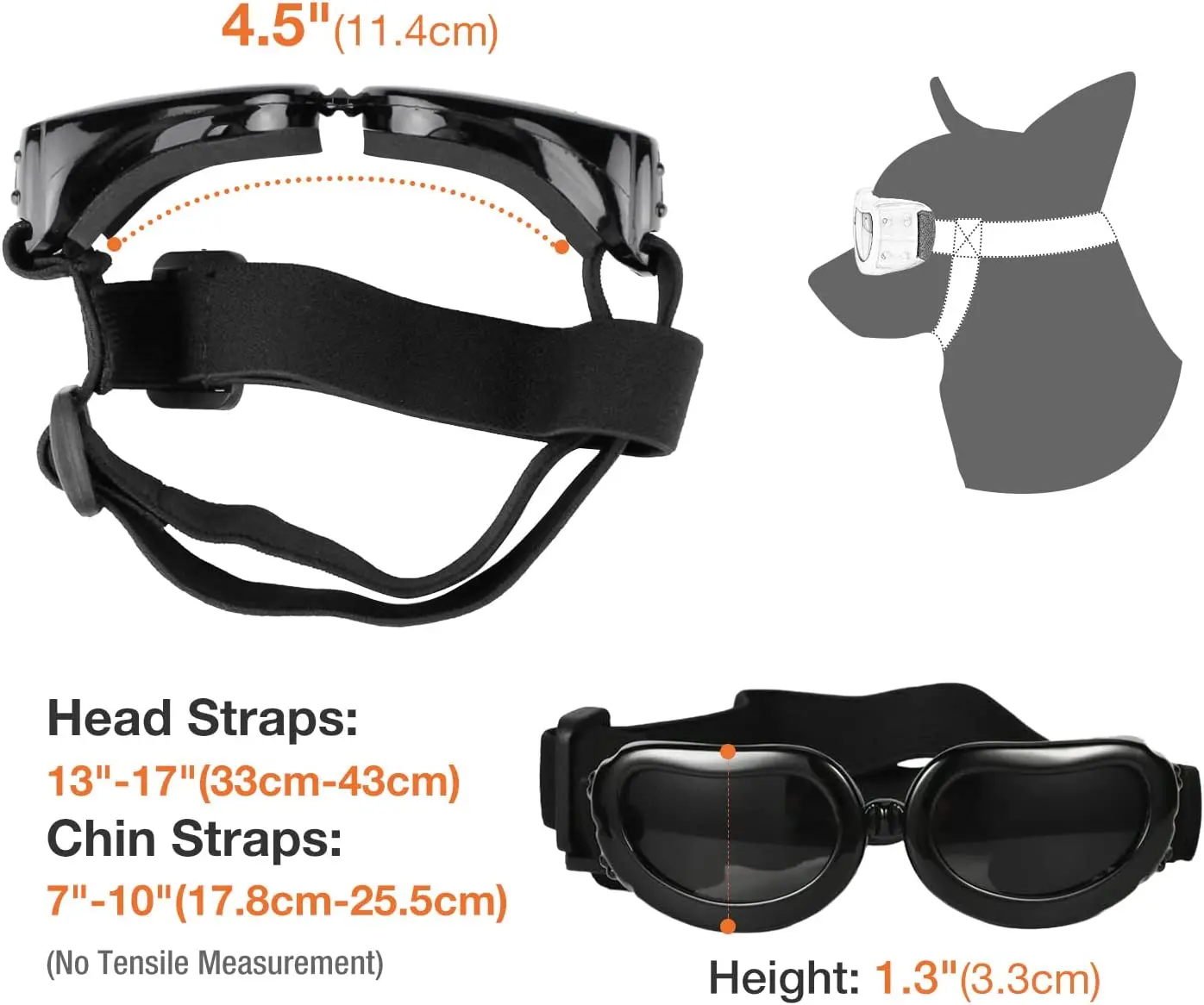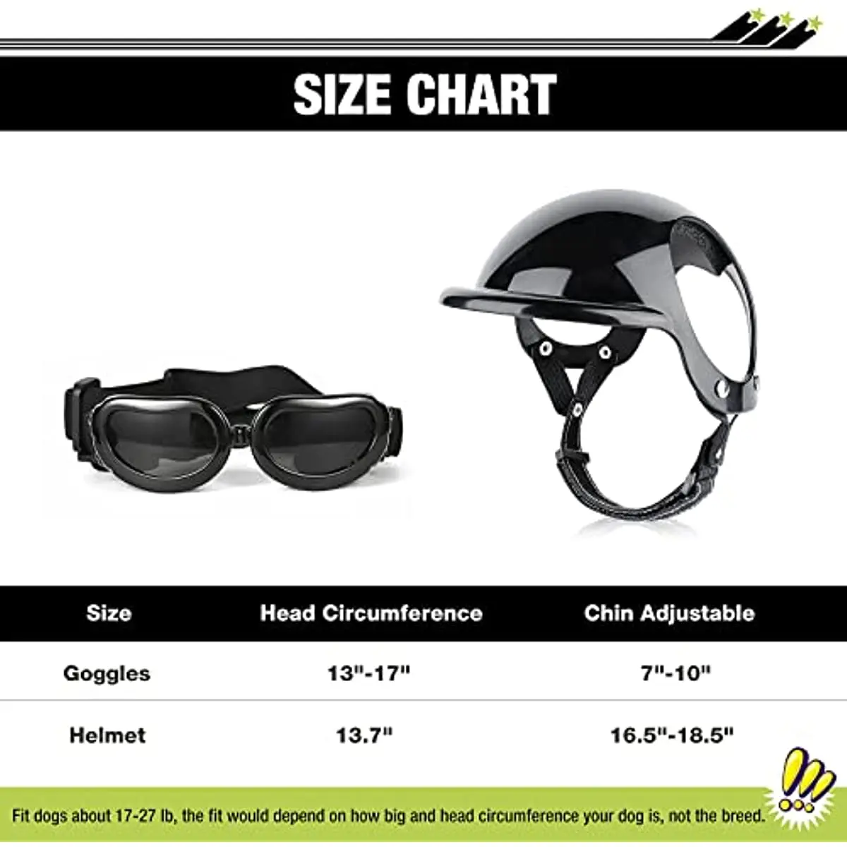 Gafas para perros con casco suficiente para adaptarse bien a la cabeza sin raspar los ojos y la cabeza del perro. Evite que gotas y pequeñas piedras entren en los ojos del cachorro cuando el perro saque la cabeza por la ventana del coche. Protege los ojos y la cabeza de los perros cuando corren, esquían o viajan. Son un gran producto para la protección ocular al aire libre.