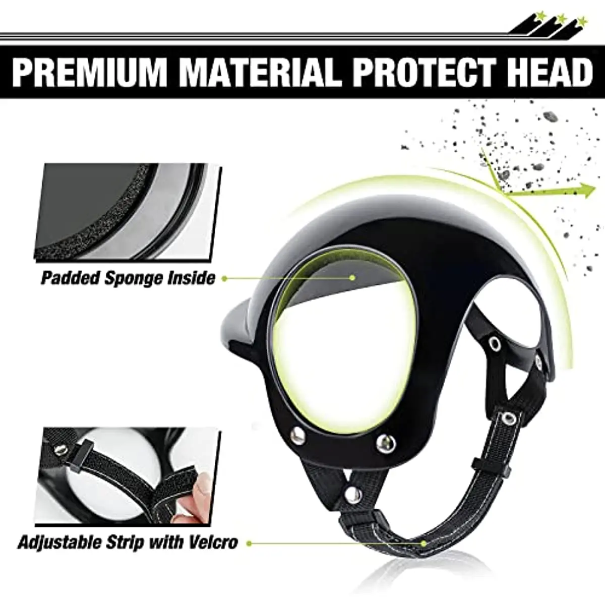 Con orificio para la oreja y Velcro ajustable son fáciles de ajustar, permite que el casco en la cabeza del perro para una mayor estabilidad y fijación completa. La superficie negra pura permite poner las pegatinas de bricolaje que desee, pegatinas de animales bonitos, pegatinas de héroes u otras calcomanías navideñas geniales.