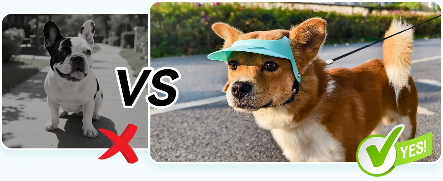Protección solar: el ala de este sombrero puede proteger eficazmente los ojos de su mascota de los fuertes rayos del sol durante las actividades al aire libre.El perro puede disfrutar corriendo, motociclismo, andando en bicicleta, montando y viajando.