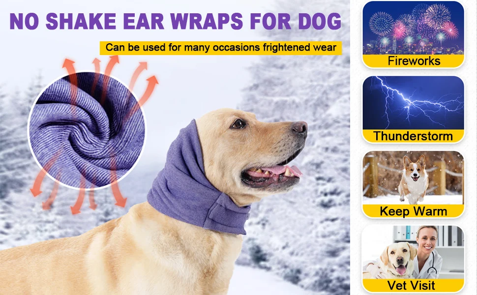 【Diseño cómodo y transpirable】: las orejeras sin sacudidas ni con solapa para perro están hechas de material de calidad, que es cómodo, transpirable y fácil de usar.La tela liviana y altamente elástica puede brindar un buen efecto envolvente a perros o gatos.Si crees que es demasiado apretado, TENGA EN CUENTA QUE LA SNUGNIDAD ES NECESARIO.NO ESTÁ APRETADO (¡ES MUY ELÁSTICO!).A las mascotas les encanta más cuando se usa solo durante una situación estresante.Consulta la tabla de tallas antes de comprar para garantizar el ajuste más cómodo para tu compañero peludo.