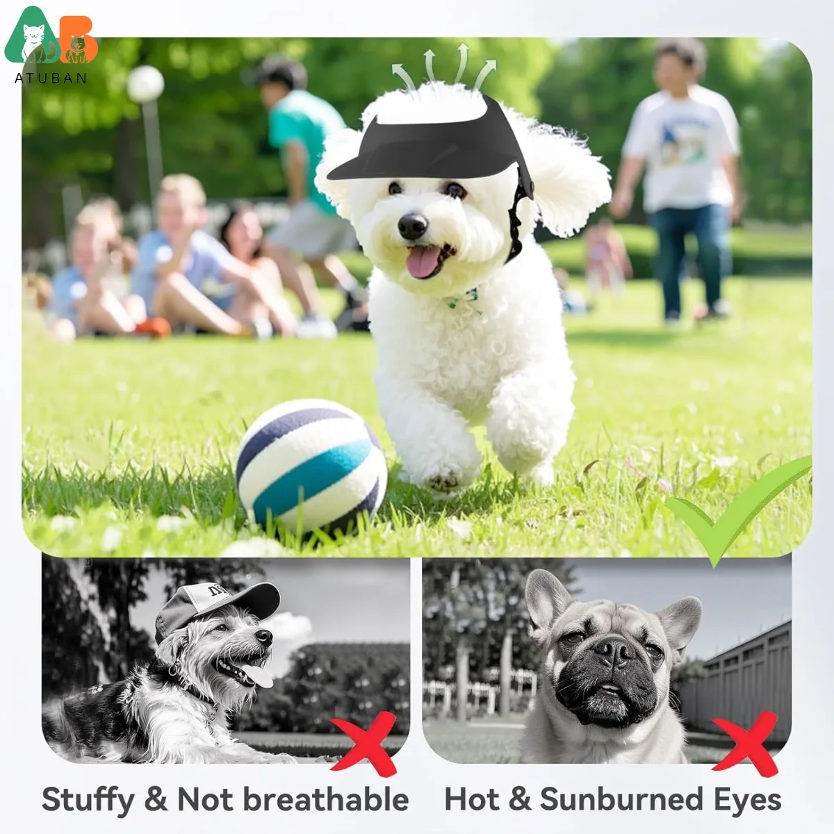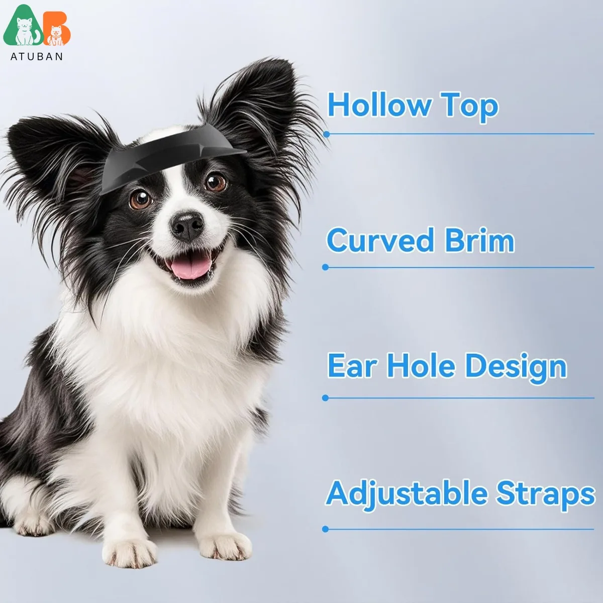 Material premium: sombrero para perro ATUBAN hecho de plástico PP suave, ligero y resistente.La visera flexible para perros no dañará la cabeza del perro.