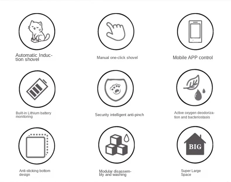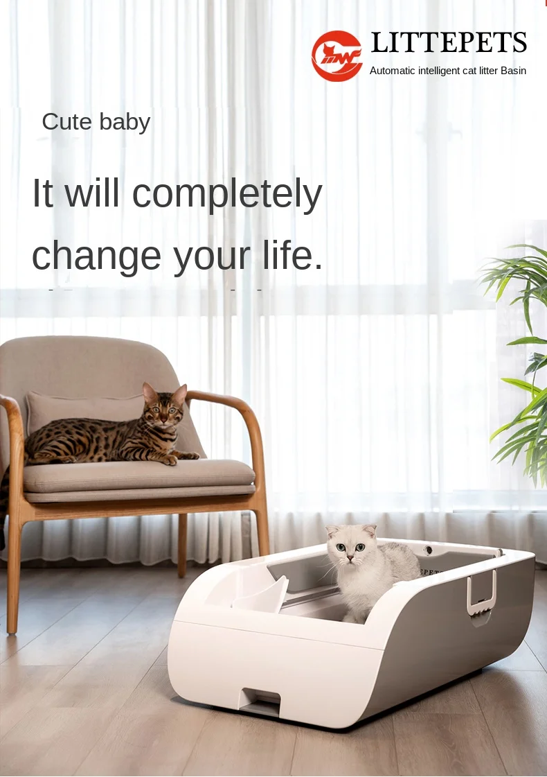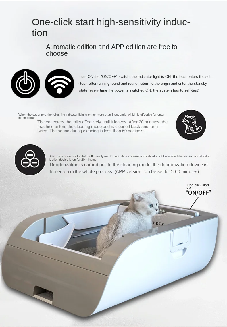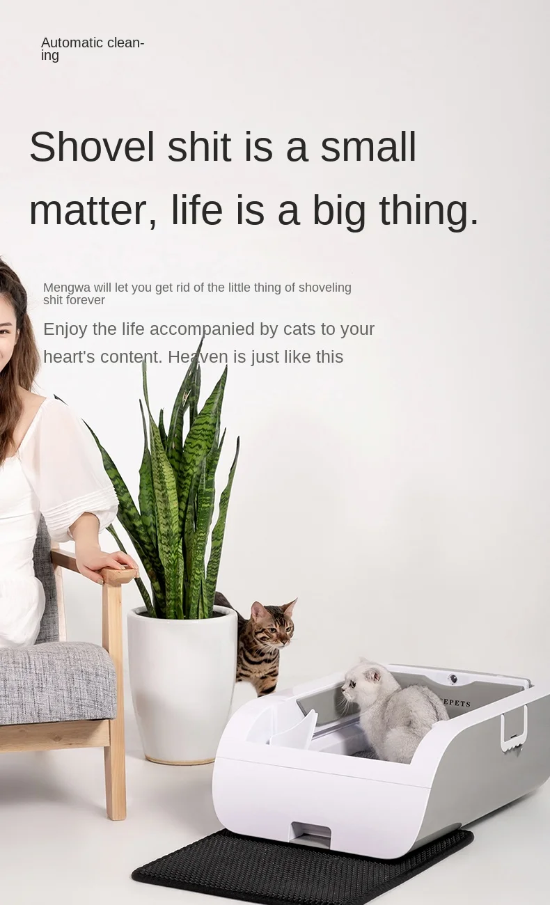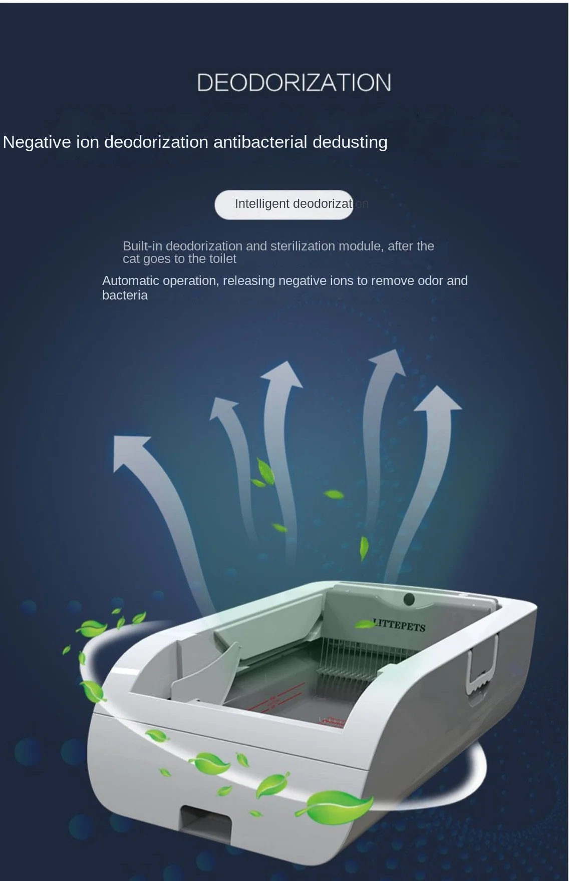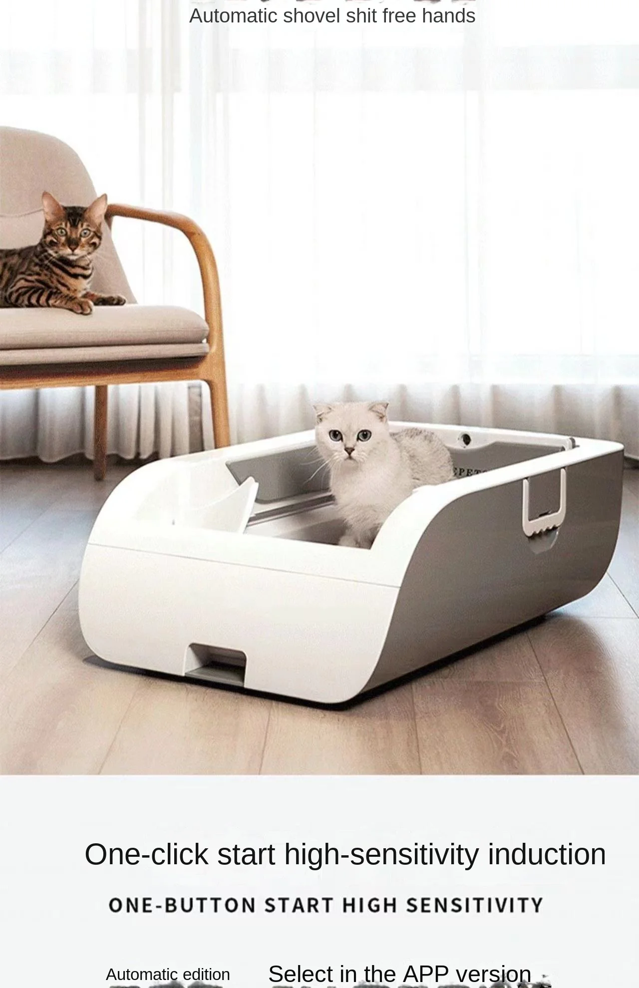 La parte inferior está hecha de material polimérico, no se puede rasparTamaño de la carcasa de la máquina: 760*470*248mm; Tamaño del inodoro para gatos: 400*350mm