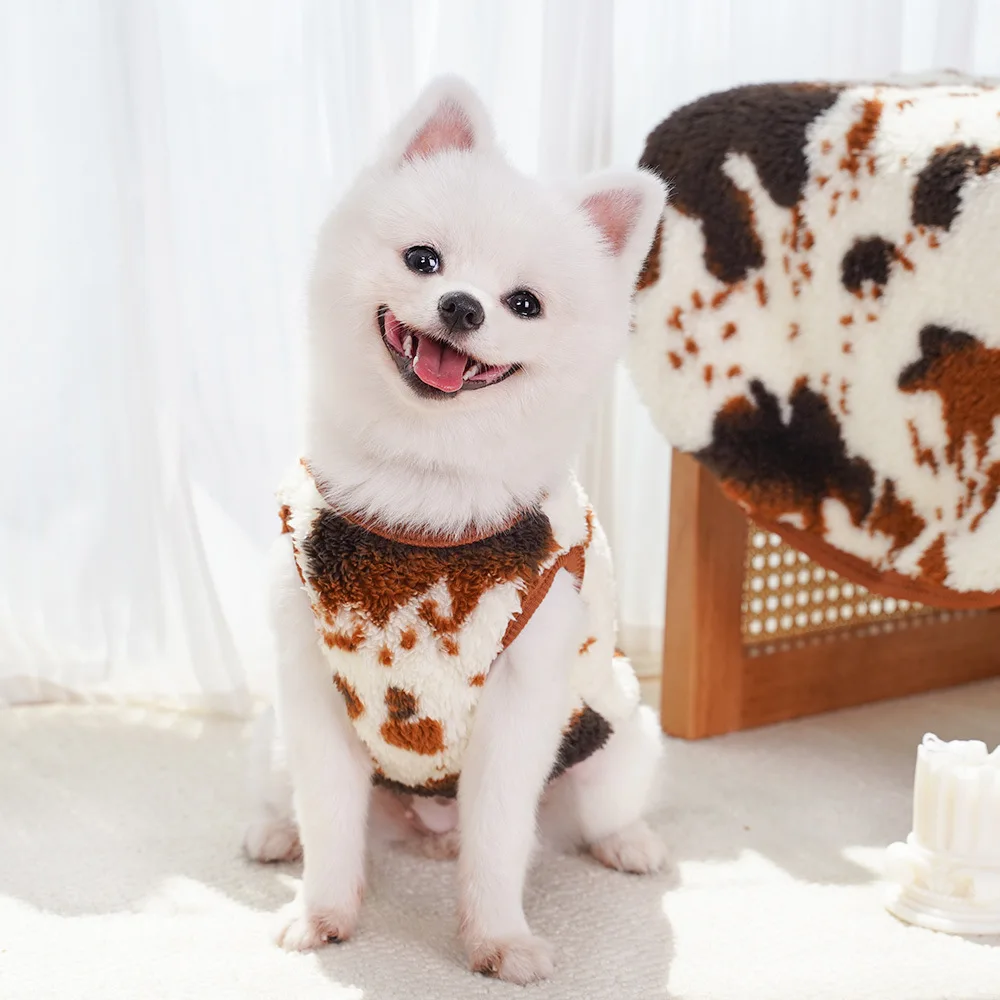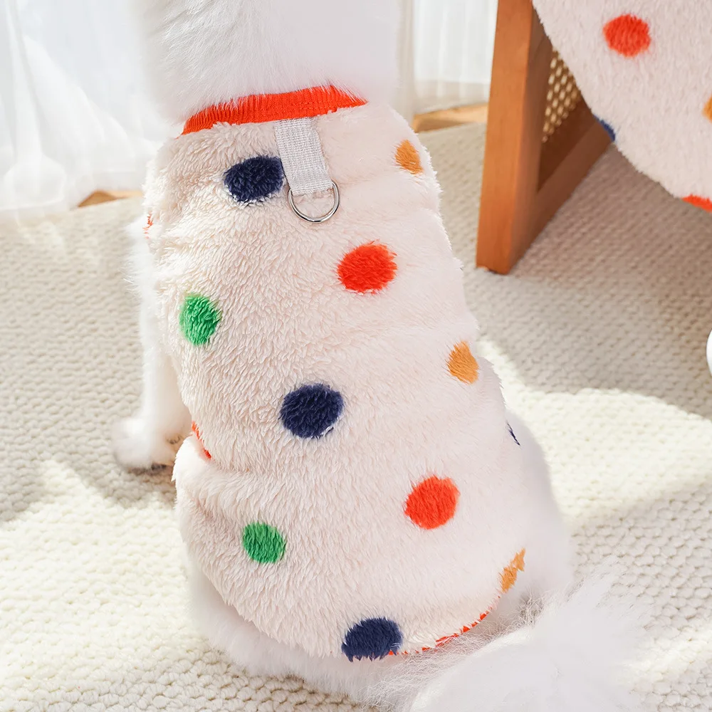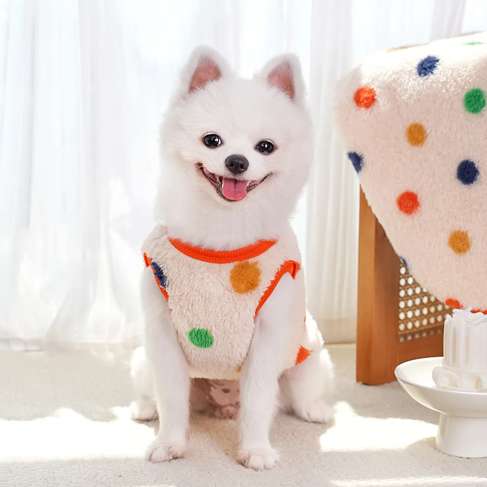 Autumn and Winter Polka Dot Plush Vest for Dogs Cats Pet Clothes Vests Supplies Dog Clothing Puppy Clothes for Small Dogs