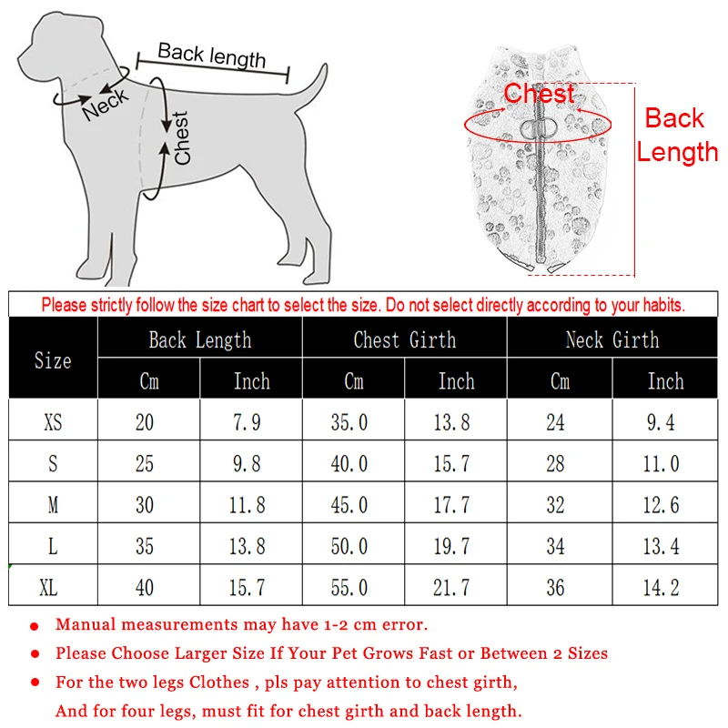 XS: Longitud de espalda: 20cm/Circunferencia del pecho: 35cm/Circunferencia del cuello: 24cm