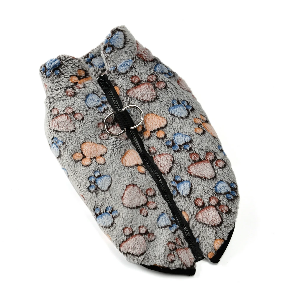 Otoño Invierno ropa para perros pequeños medianos gato suave polar pata estampado cremallera chaqueta abrigo Chihuahua Yorkies disfraz ropa
