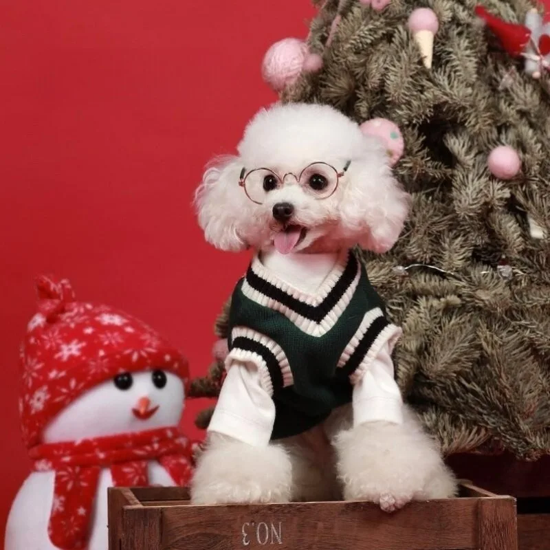 Ropa de invierno para perros, suéter de lujo para perros, abrigo tejido liso con cuello en V para perros, ropa de Chihuahua Bichon Whippet, chaleco para cachorros, chaqueta para gatos