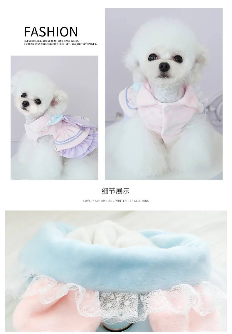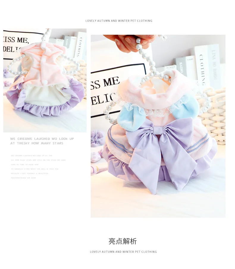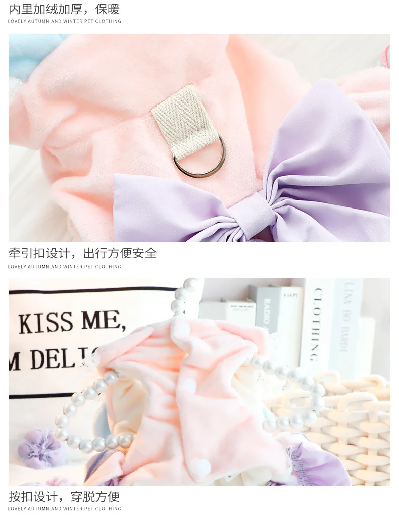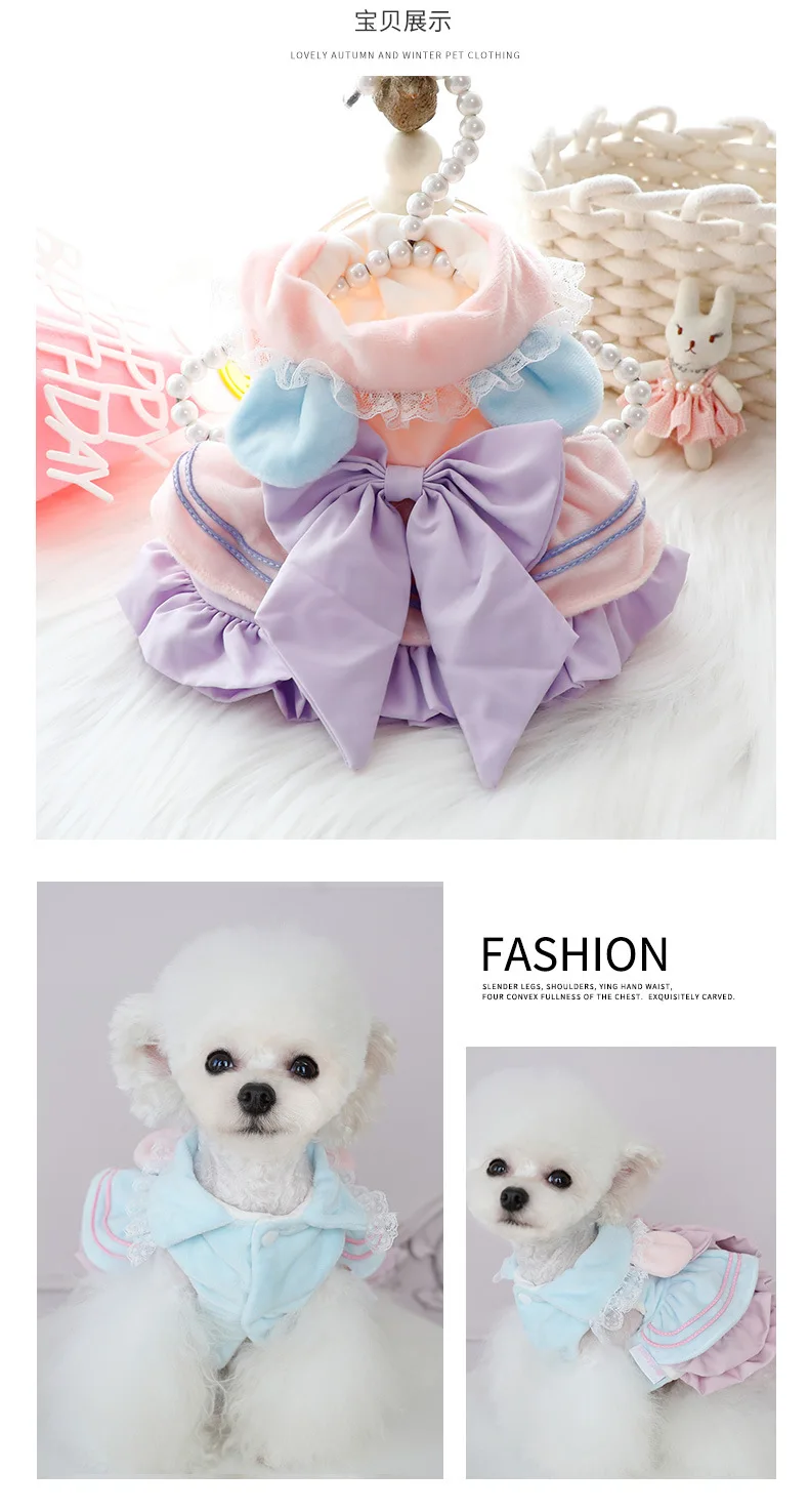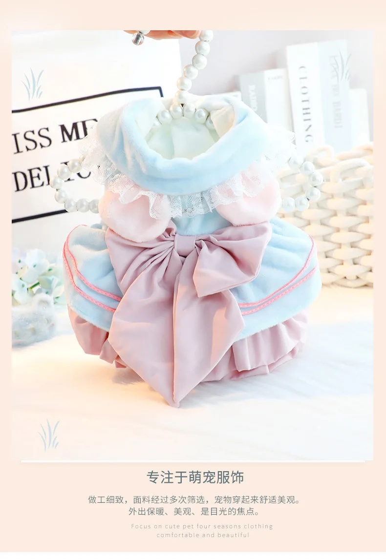 Autumn Winter Thick Pet Dress For Small Dogs Cats Princess Style With Cute Bowknot, Warm Soft Girlish Outfit For Small Dog