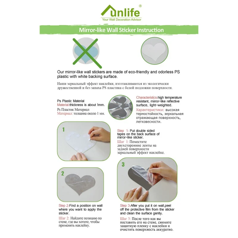 6. Simplemente retire el papel en la parte posterior de los espejos térmicos, luego retire la película protectora y péguelo en la pared; una hermosa calcomanía artística de pared para su hogar u oficina.