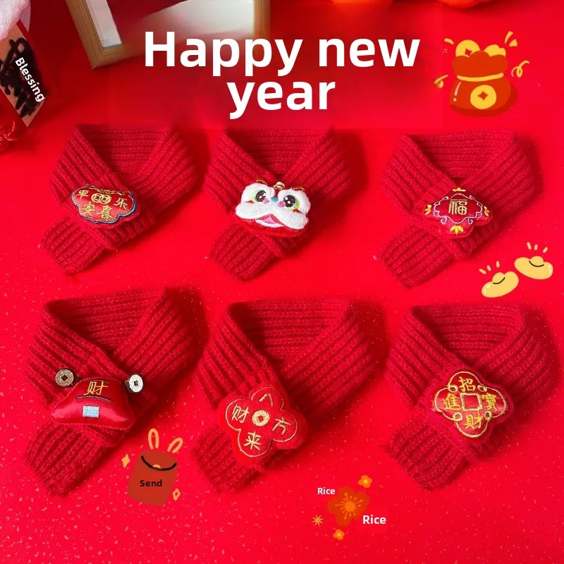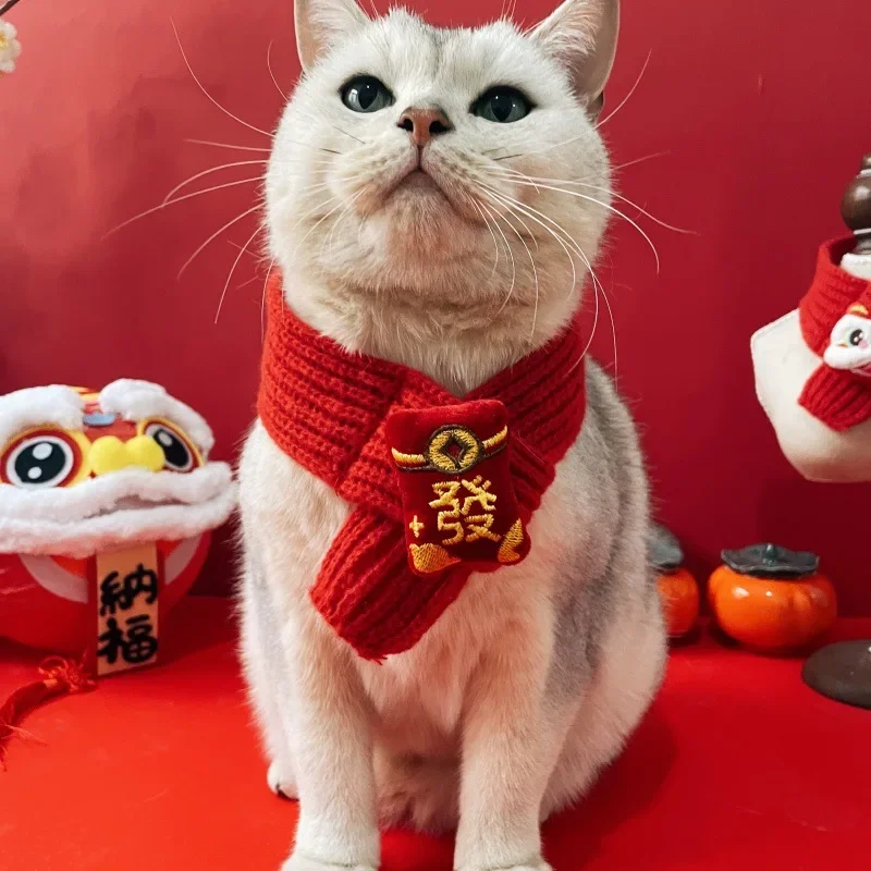 Babero de Año Nuevo para mascotas y gatos, bufanda de Año Nuevo segura y cálida para gatos y perros decorada con joyería Koi de Año Nuevo Chino, Collar para perros