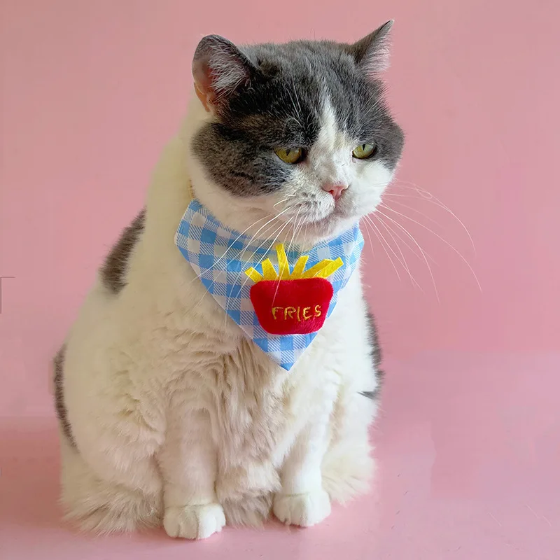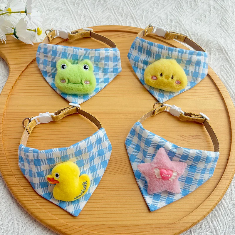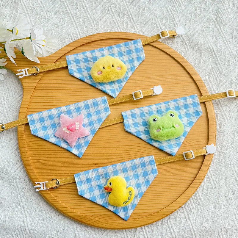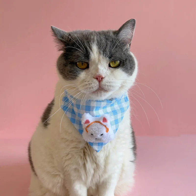 Babero con baba para perro, babero triangular para mascota, babero de dibujos animados para gato, traje bonito a cuadros, accesorios para perros pequeños
