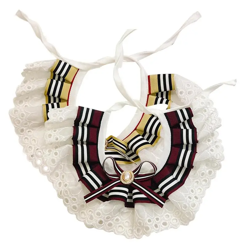 This pet lace bib is made of high-strength fabrics that are durable and comfortable. It will bring an exquisite look to your furry friend on any occasion. Whether it's a party, a wedding, or a family photo, this bib has a wide range of uses. It will give your pet an attractive appearance and make them stand out from the crowd. The bib is easy to put on and take off, and comes in different sizes and colors to suit your preference.