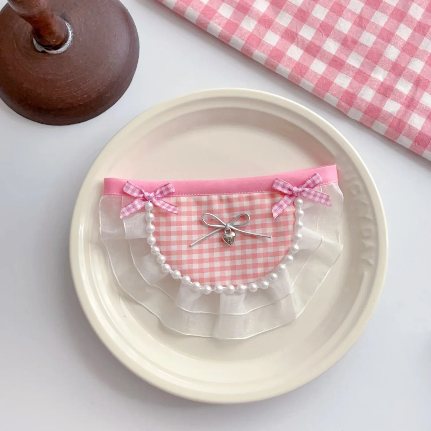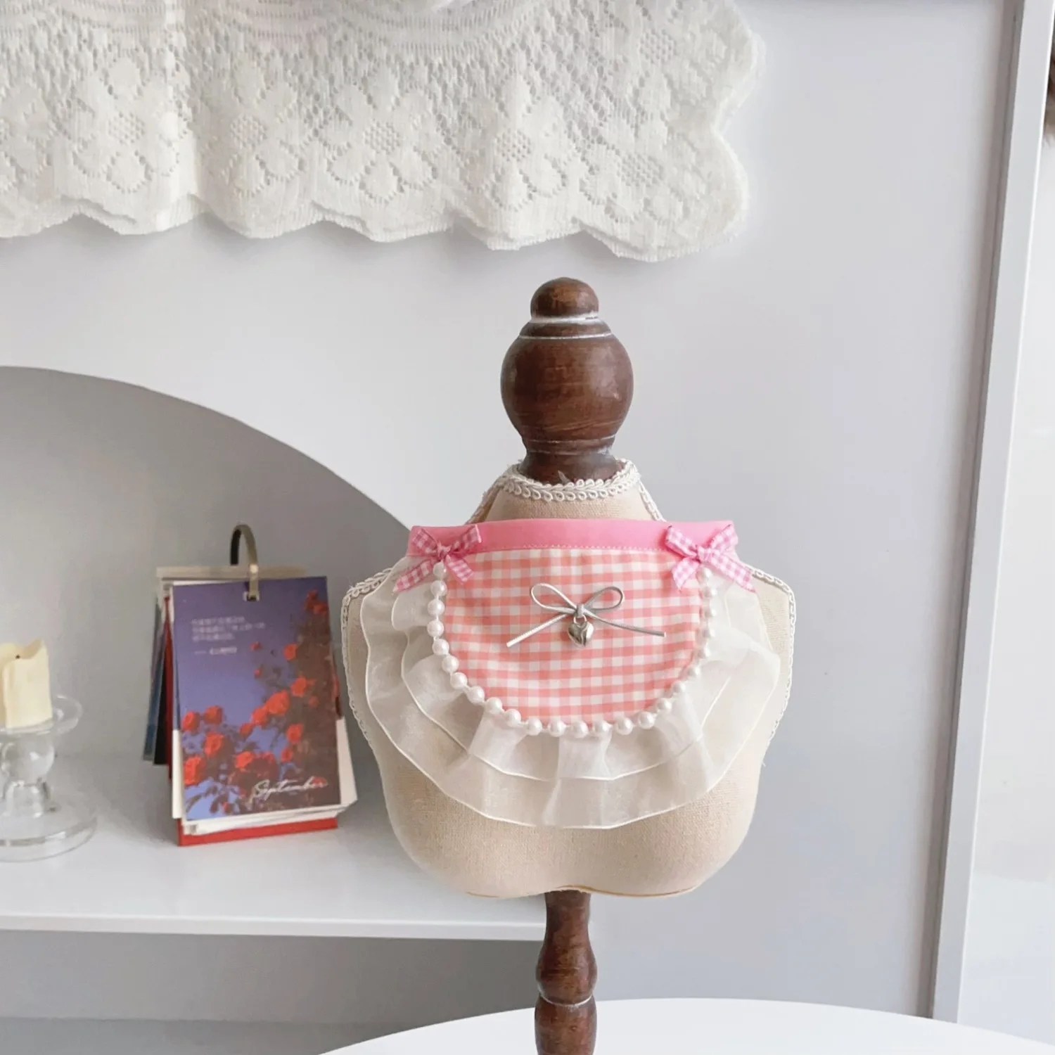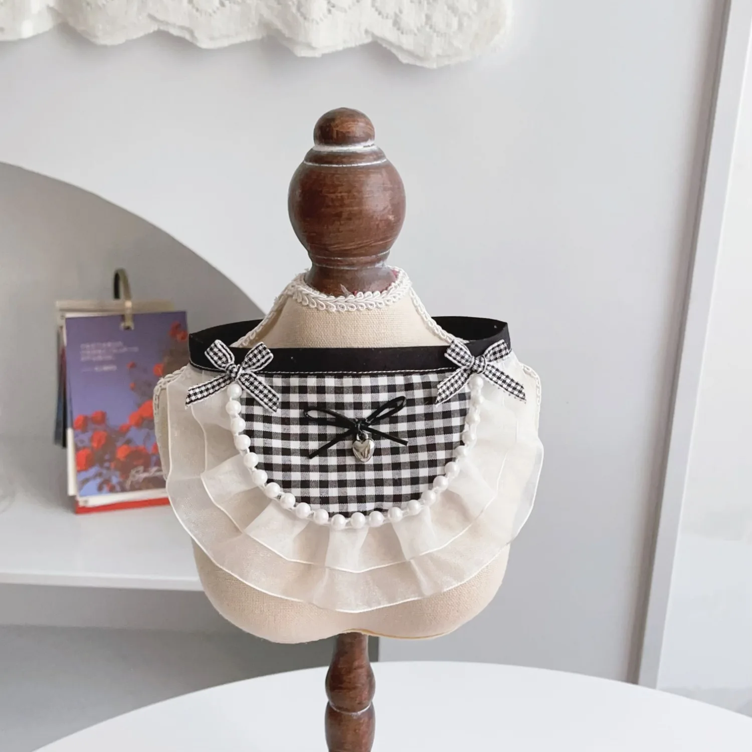 Babero a cuadros INS para mascotas, toalla para bava de gato/perro, encaje de perlas, bufanda para perros pequeños, medianos y grandes, ropa para cachorros pequeños