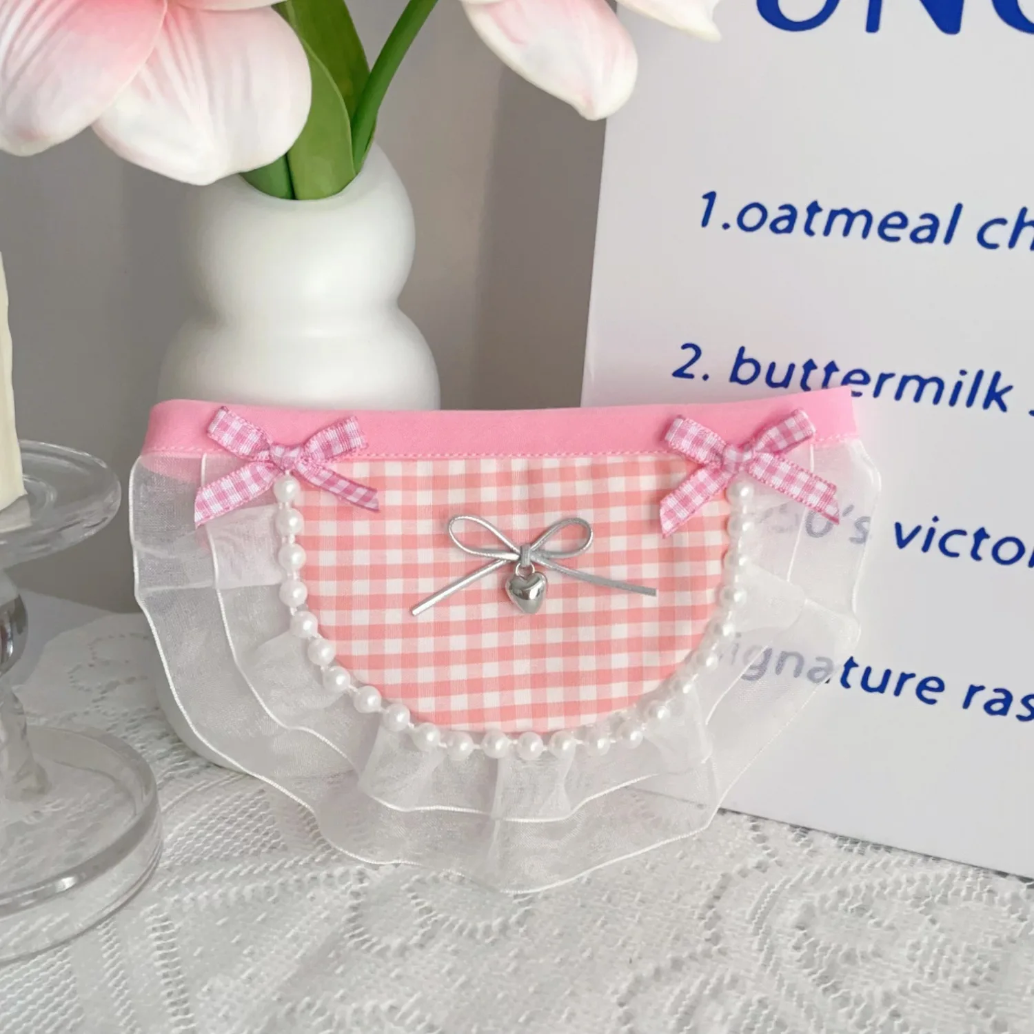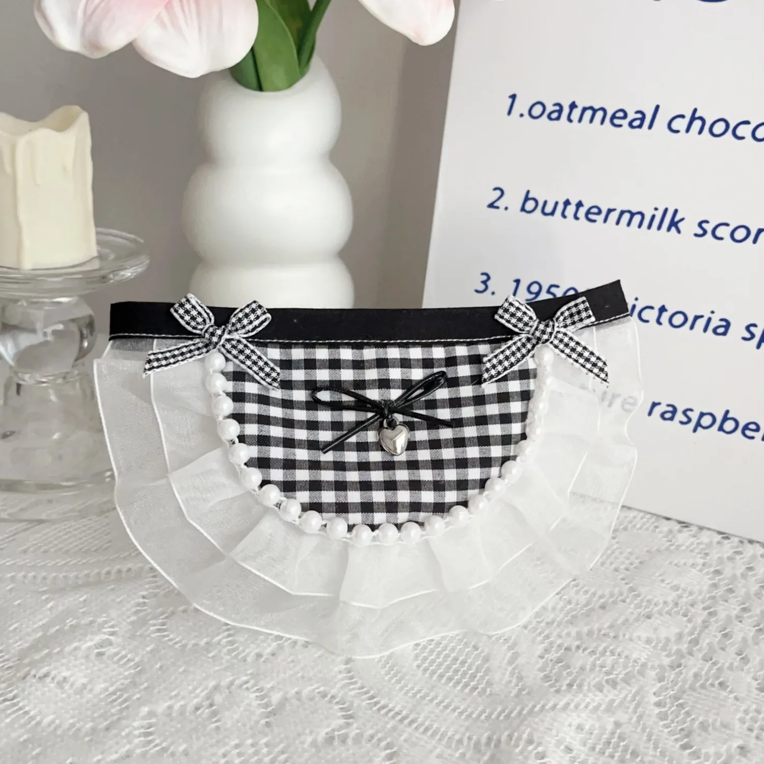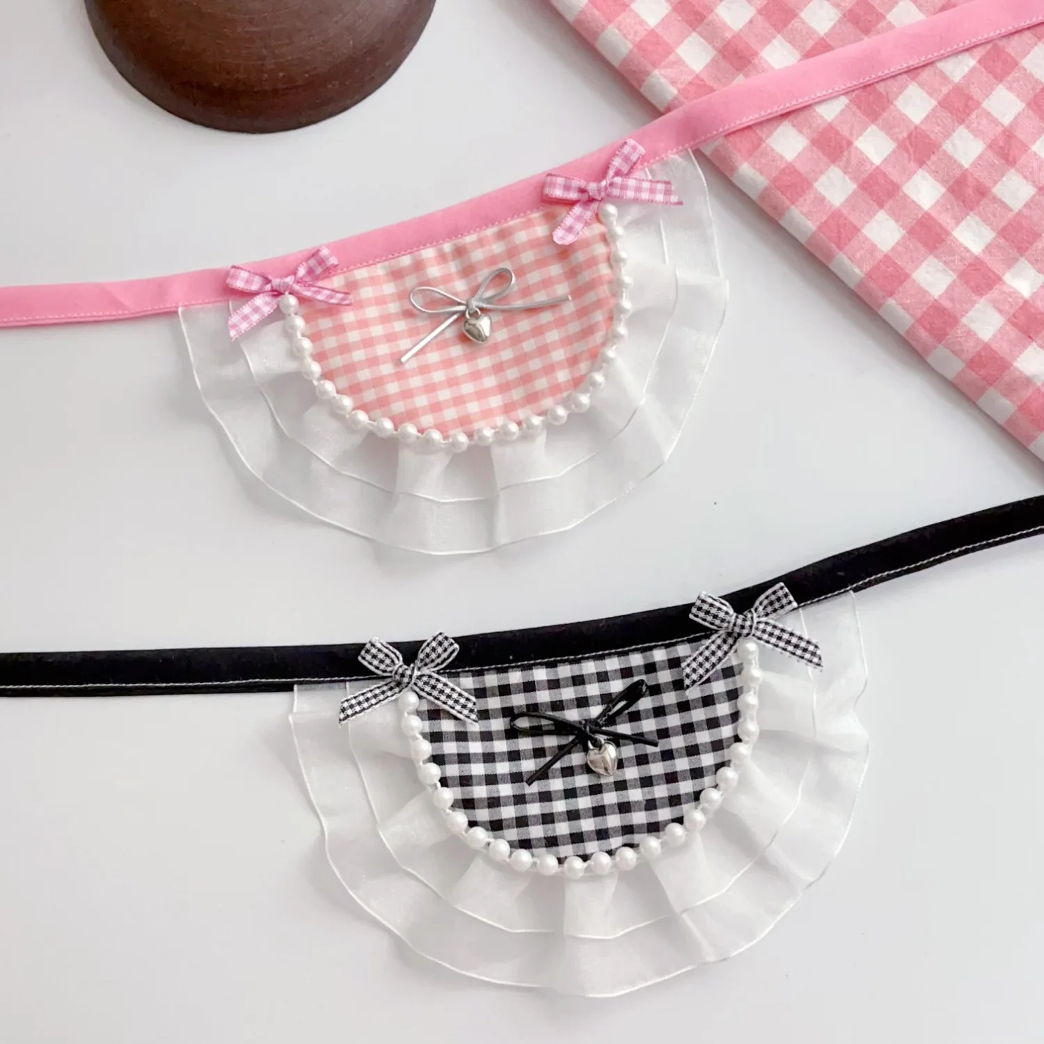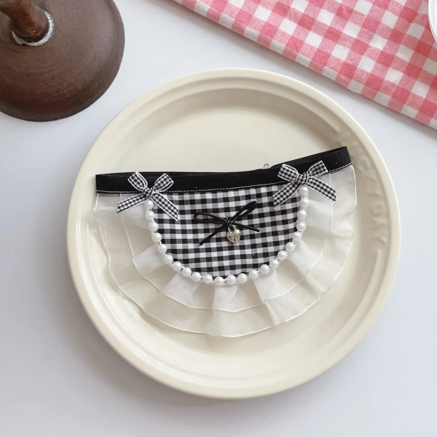 Babero a cuadros INS para mascotas, toalla para bava de gato/perro, encaje de perlas, bufanda para perros pequeños, medianos y grandes, ropa para cachorros pequeños
