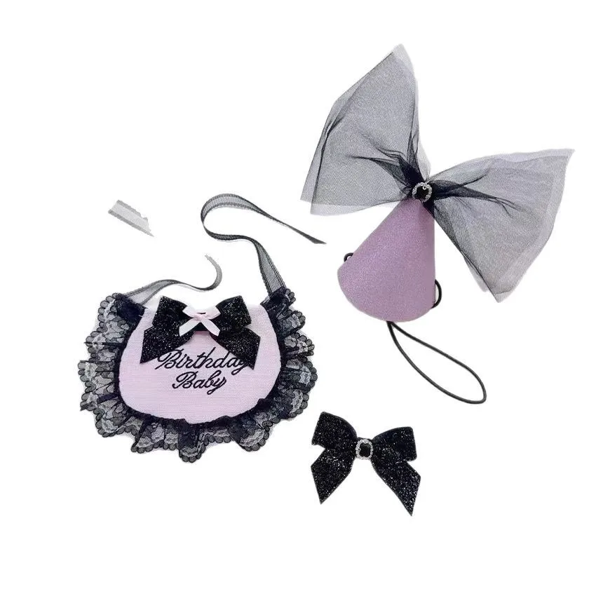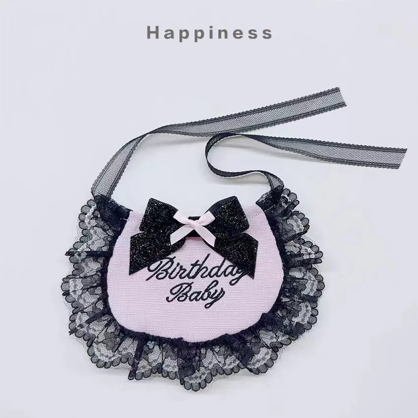 Babero de cumpleaños para mascotas, diadema con lazo bonito y encantador, accesorios, conjunto de encaje de princesa para cumpleaños, toalla para bava, cachorro, perro pequeño